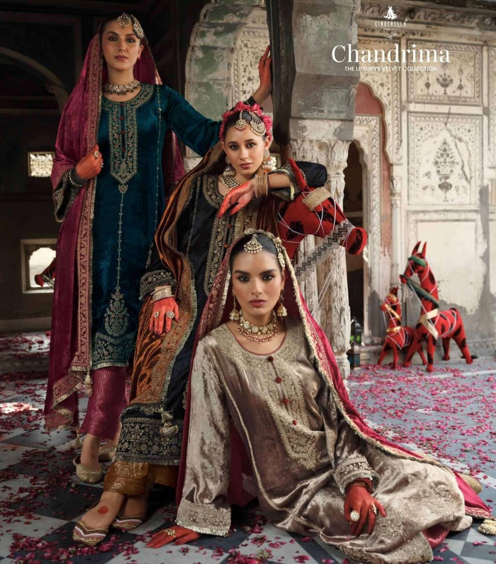buy cinderella chandrima series 18721 to 18726 viscose velvet winter readymade designer suit in wholeslae surat latest catalogue 2025