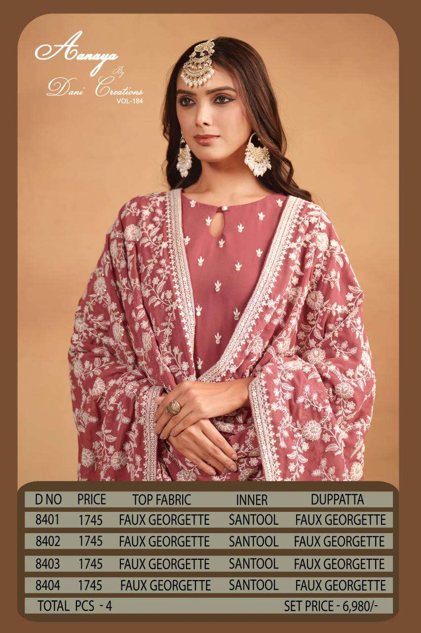 dani creation aanaya vol 184 series 8401-8404 FAUX GEORGETTE wholesale salwar kameez in surat