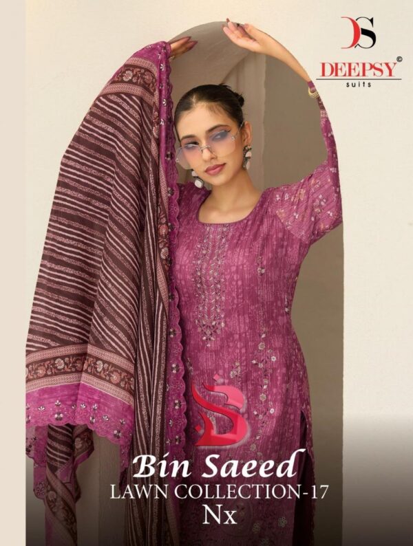 buy deepsy suits bin saeed vol 17 nx Pure cotton with heavy self embroidery wholesale suit latest catalogue 2025