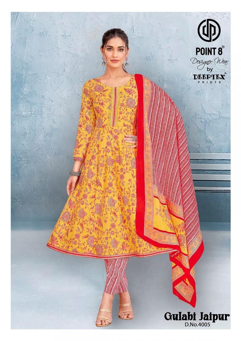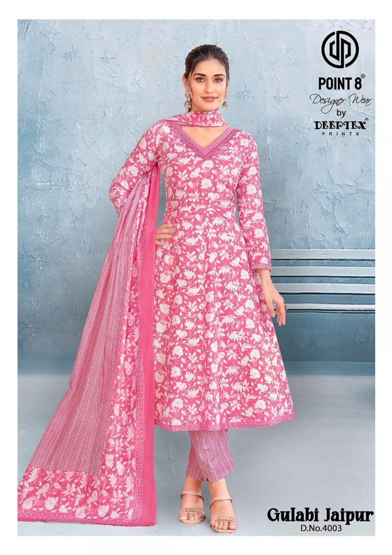 deeptex point 8 gulabi jaipur vol 4 series 4001 to 4008 cotton anarkali fully stitch plus size suit in wholesale surat
