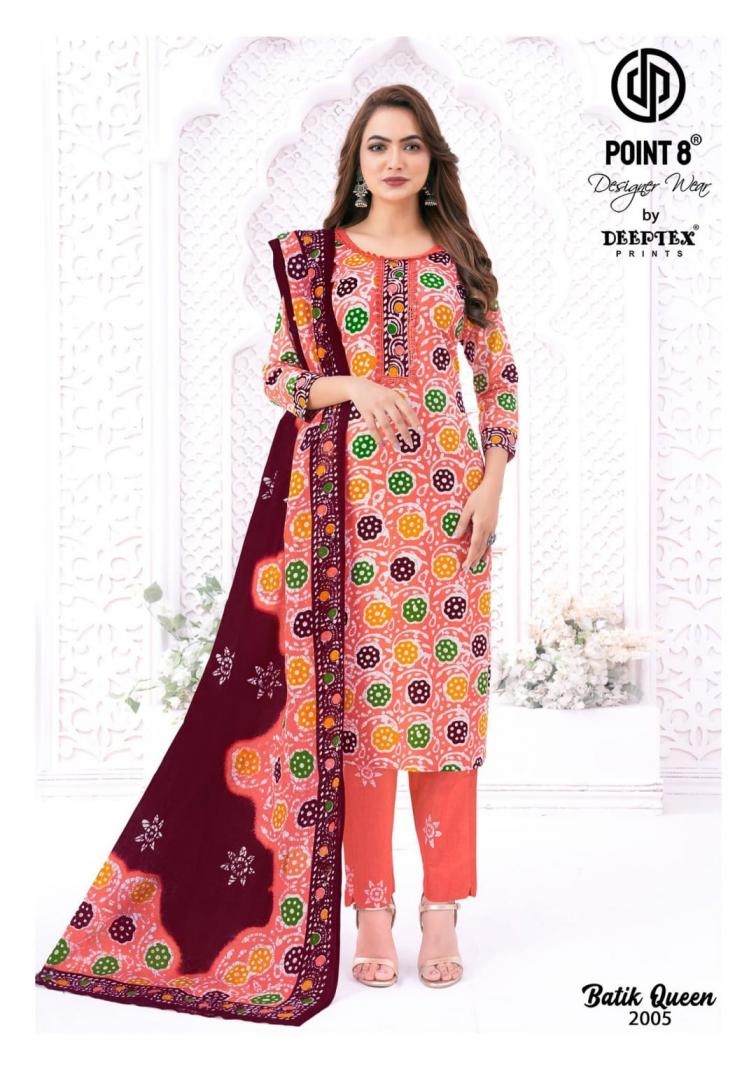 • Full Name : Deeptex Prints Batik Queen Vol 2 Series 2001 To 2008 Cotton Readymade Plus Size Suit In Wholesale Surat