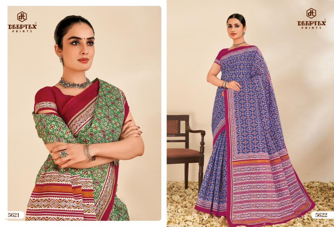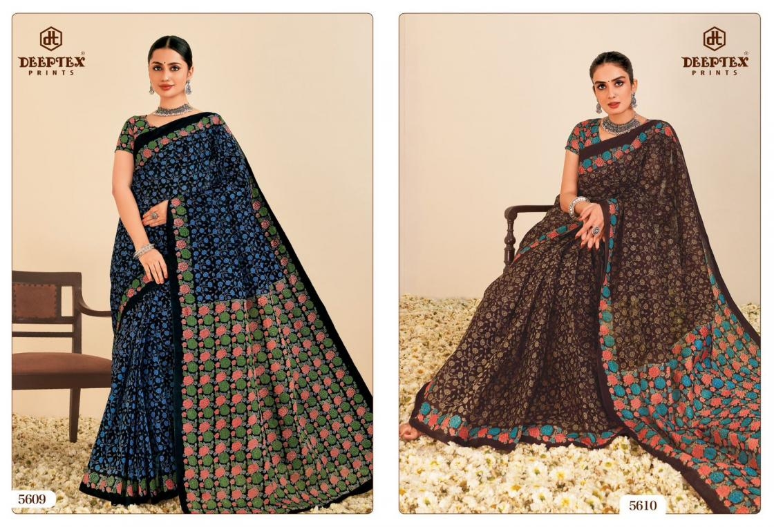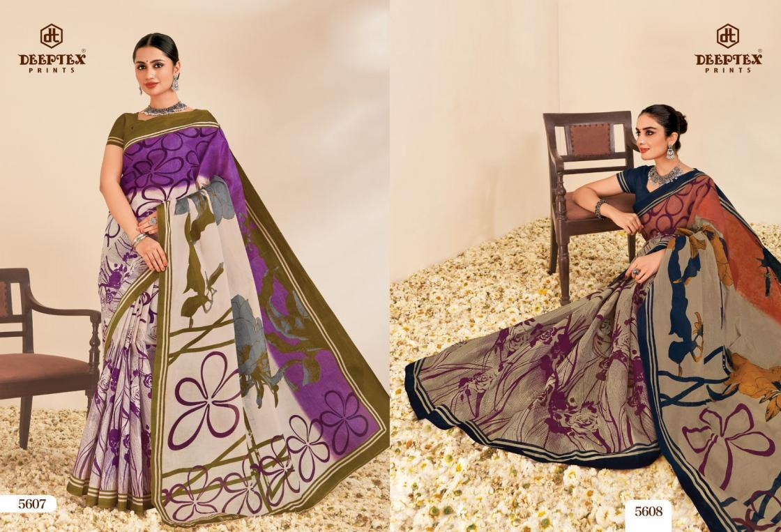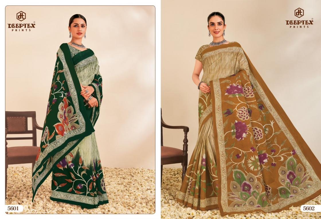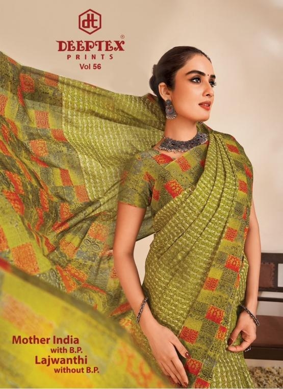 deeptex prints mother india vol 56 series 5601-5630 cotton wholesale saree Buy New Latest Catalogue 2025 deeptex prints mother india vol 56 series 5601-5630 cotton wholesale saree. Available in Singles and Bulk at Laiq Boutique. Buy at Wholesale price at very reasonable rate. Specification :