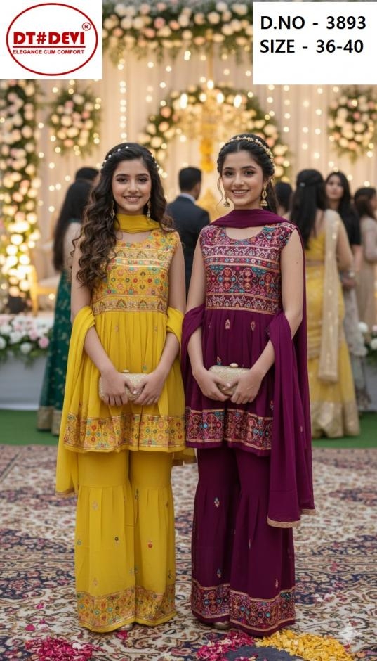 | Name : | Dt Devi 3893 Georgette Fully Stitch Combo Sharara Kids Suit In Wholesale Surat | |
