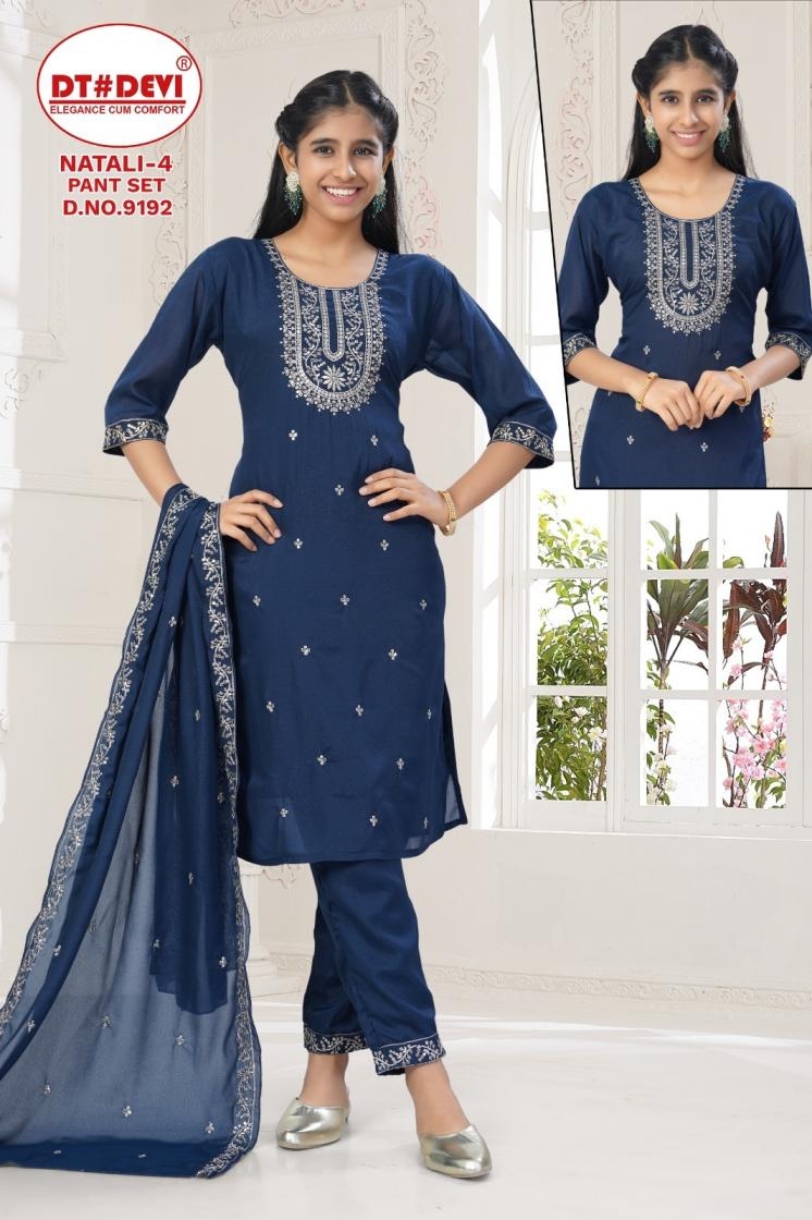 buy dt devi natali vol 4 pant set 9192 star georgette readymade combo kids suit in wholesale surat latest catalogue 2025