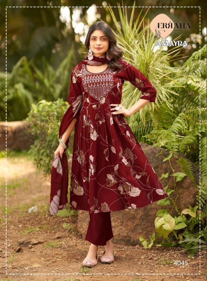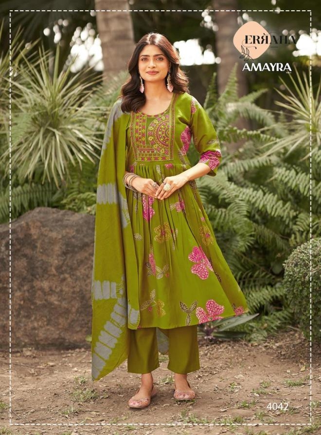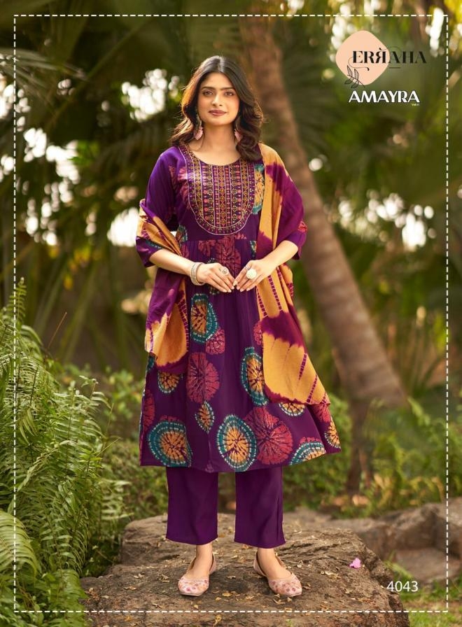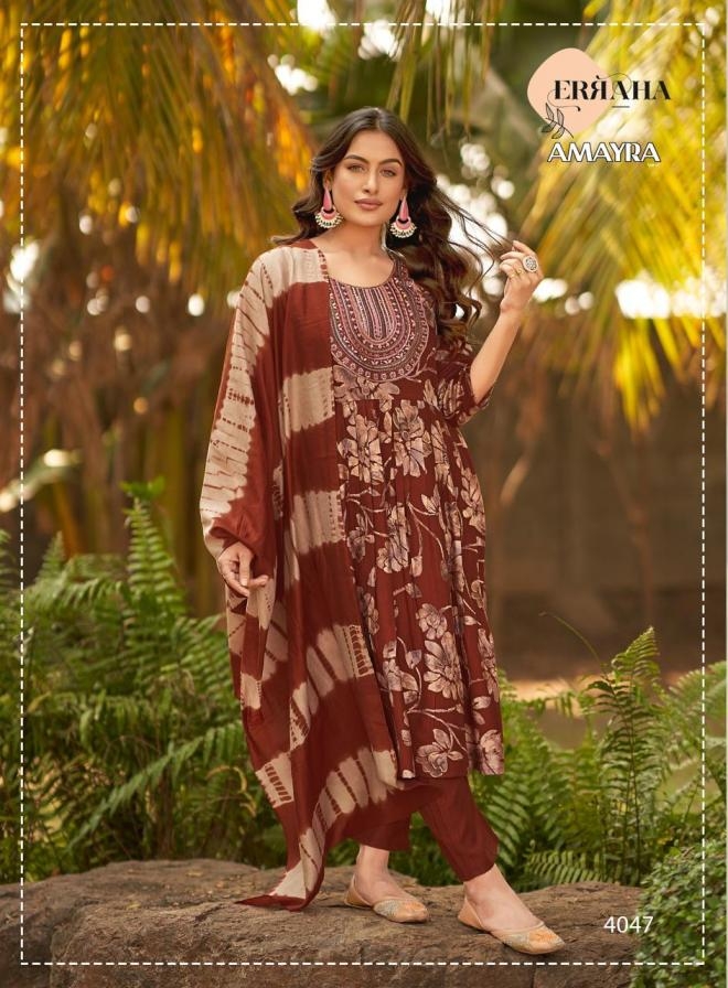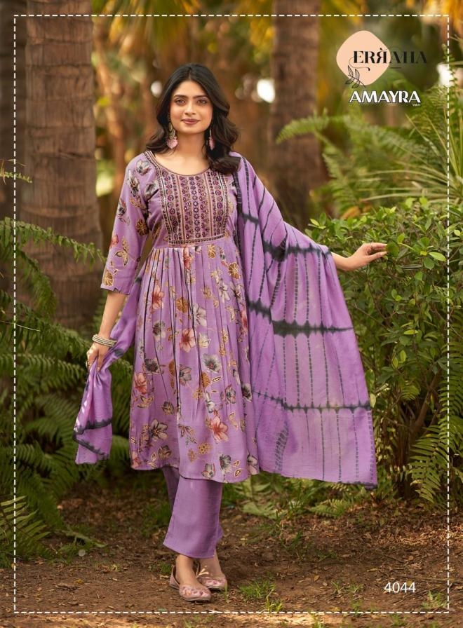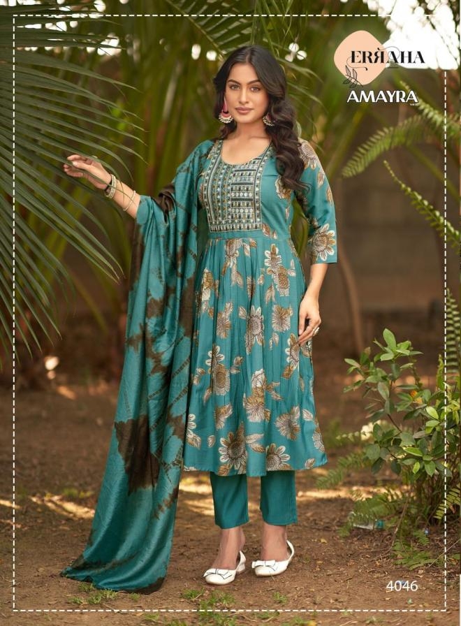 • Full Name : Erraha Amayra Vol 4 Series 4041-4048 Vetican Foil Print Readymade Suit