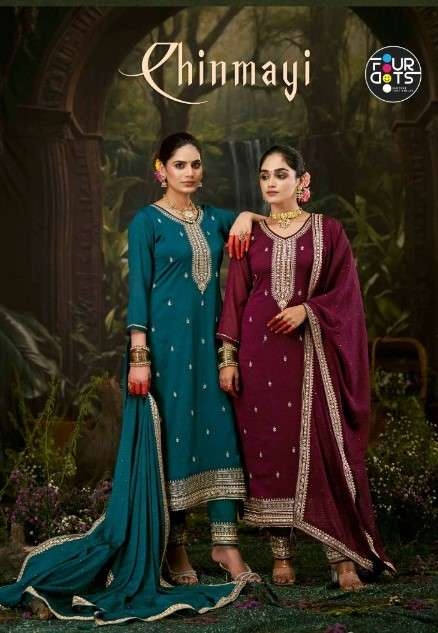 buy Fourdots Chinmayi series 3041 to 3044 Designer crush silk with heavy work salwar kameez in wholesale surat latest catalogue 2025