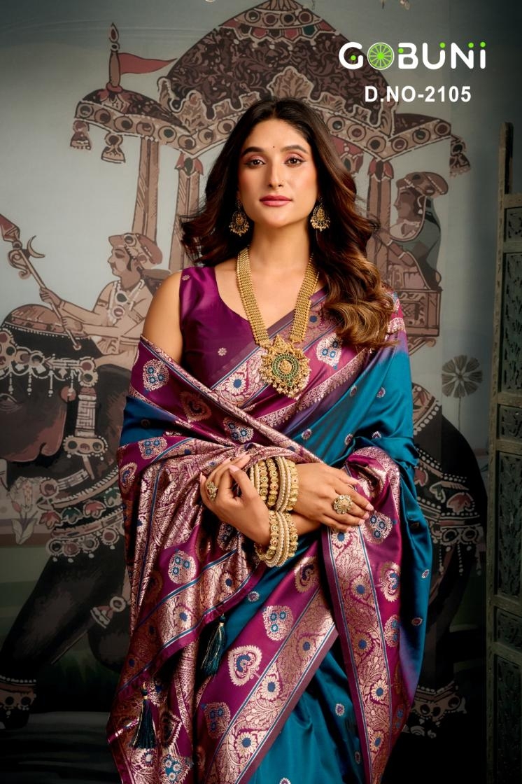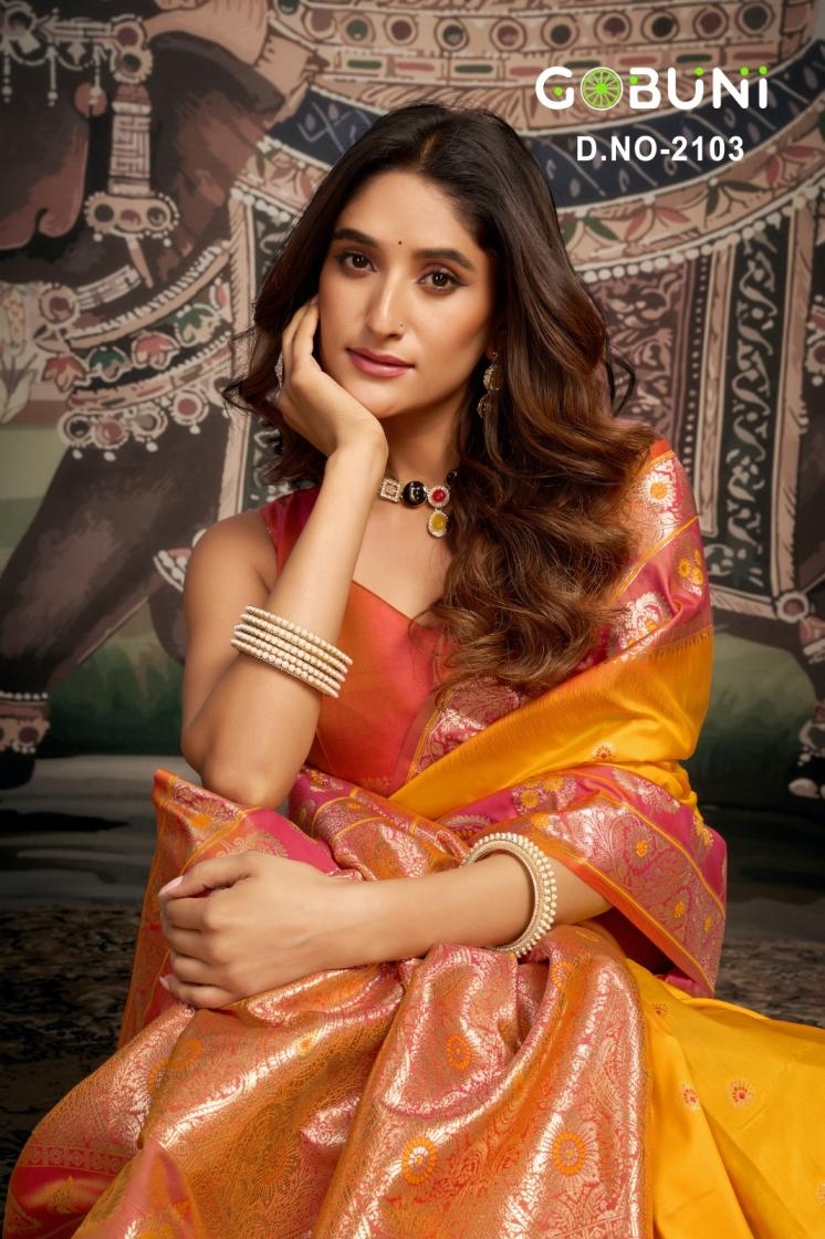 buy gobuni shravya silk series 2101 To 2106 mina work luxurious silk sarees in wholesale surat latest catalogue 2025