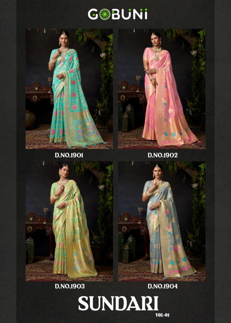 gobuni sundari vol 1 series 1901 To 1904 organza khadi traditional sarees in wholesale surat