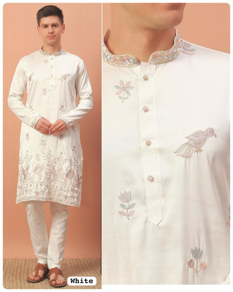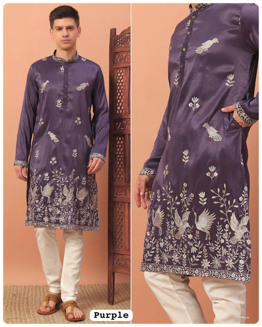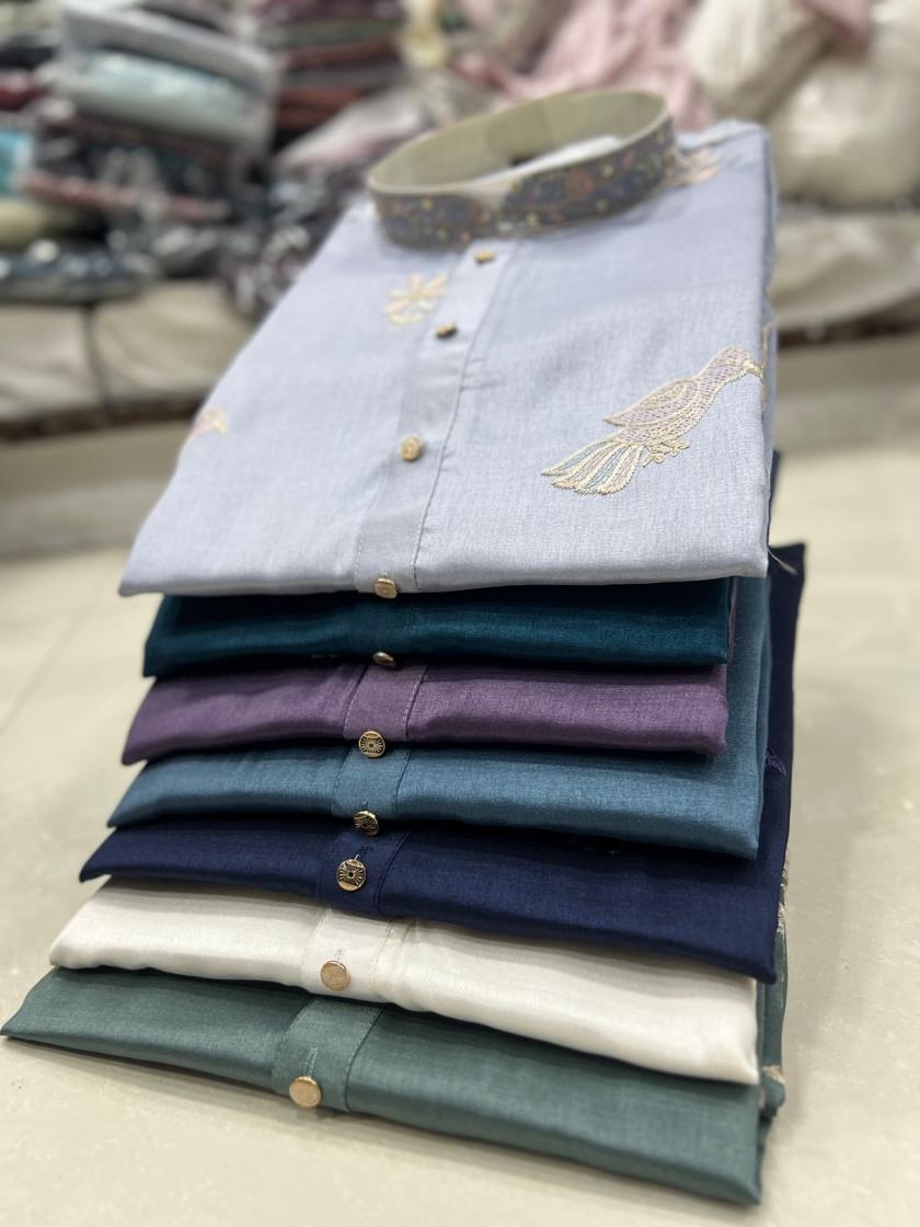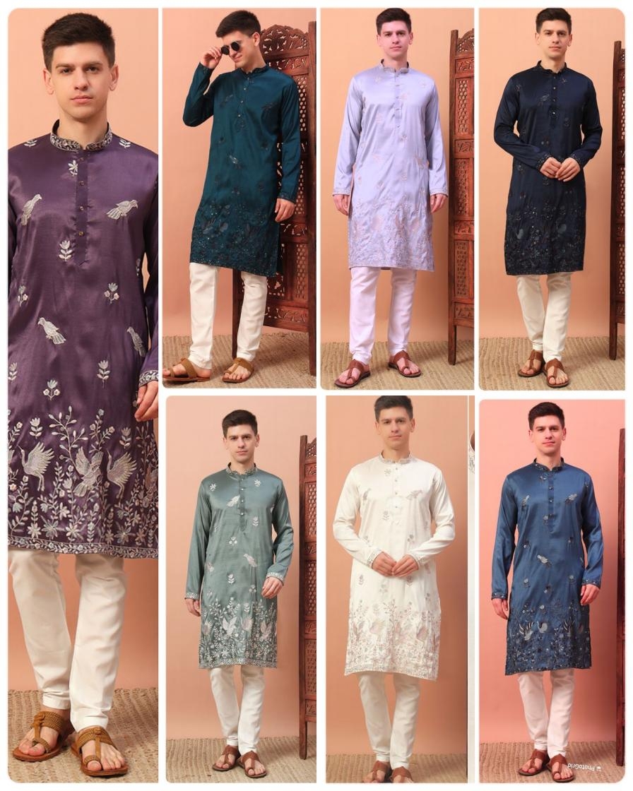 grand utsav silk embroided fully stitch mens kurta in wholesale surat