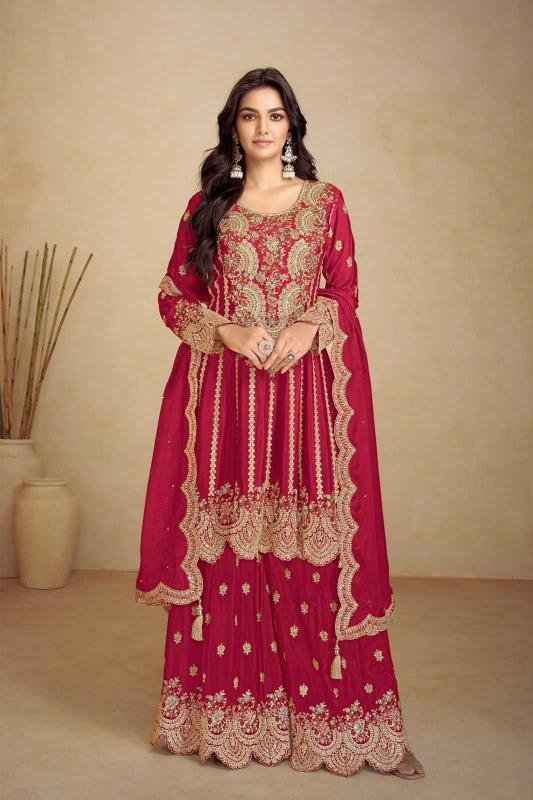 Name : Gulkayra Designer Jalwa Series 7502 A-e Chinon Palazzo Style Designer Full Stitch Dress