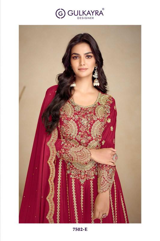 buy Gulkayra Designer Jalwa Series 7502 A-E Chinon Palazzo Style Designer Full Stitch Dress latest catalogue 2025