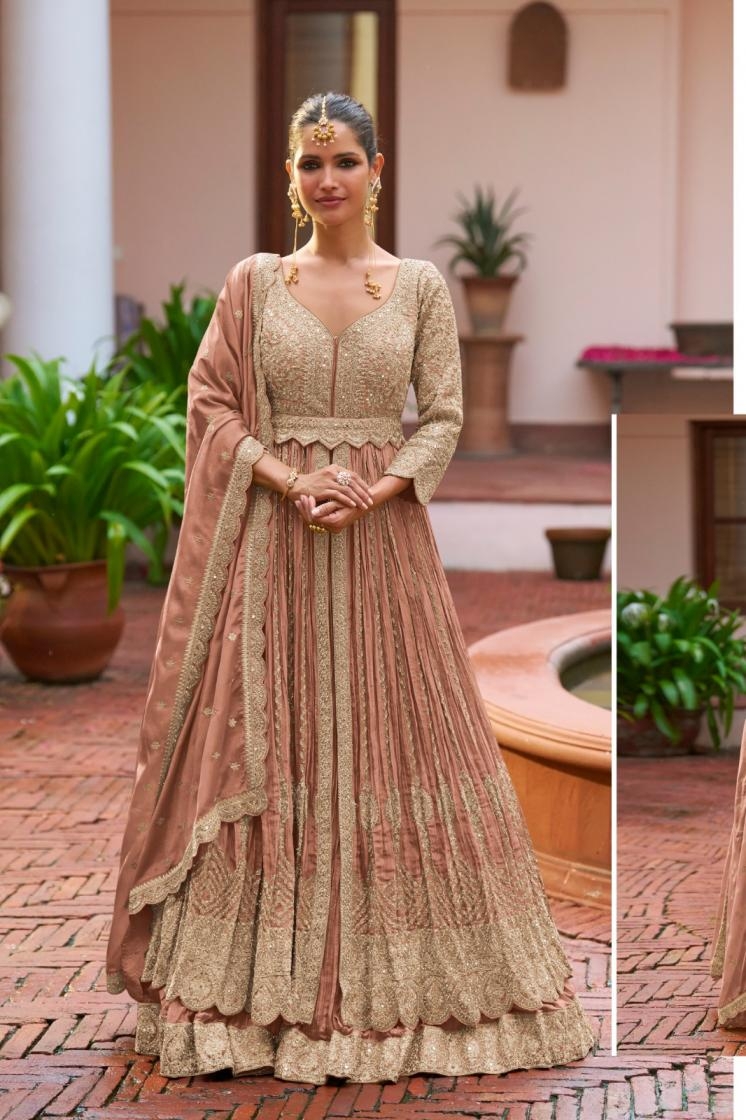 We have designer gowns which are Perfect for cocktail parties, receptions, or evening events. our designer gowns contain Indian culture with modern design. You can Choose from floor-length gowns with embroidery, handwork, sequins, and drape with details. We offer Indo-western gowns, fusion gowns, and bridal gowns that make you look out standing.