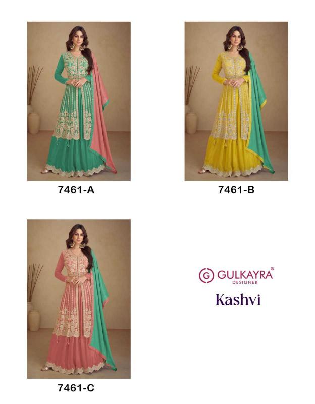 | Name : | Gulkayra Kashvi Series 7461 Real Chinon Readymade Suit | |