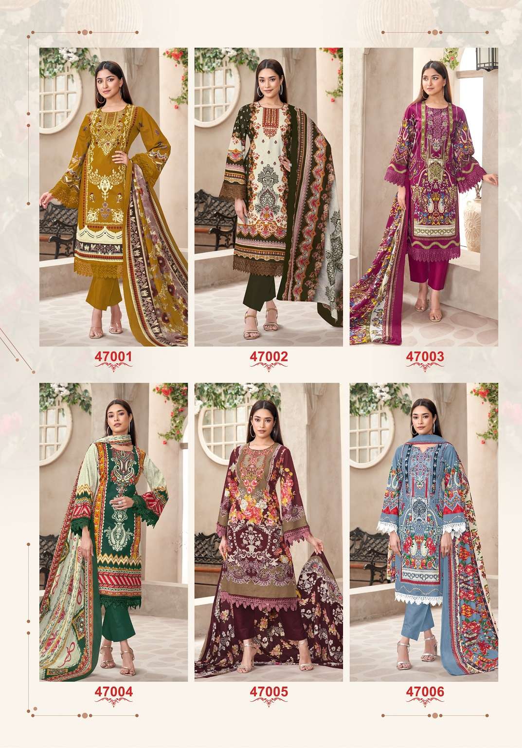 Jash Elliza Vol-47 series 47001 to 47010 Pure Lawn Cotton Print salwar kameez in wholesale surat Buy New Latest Catalogue 2025 Jash Elliza Vol-47 series 47001 to 47010 Pure Lawn Cotton Print salwar kameez in wholesale surat. Available in Singles and Bulk at Laiq Boutique. Buy at Wholesale price at very reasonable rate. Specification :