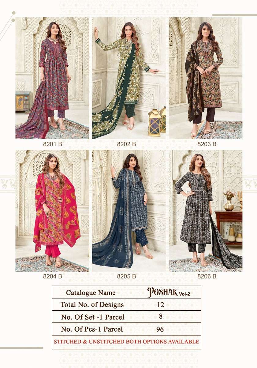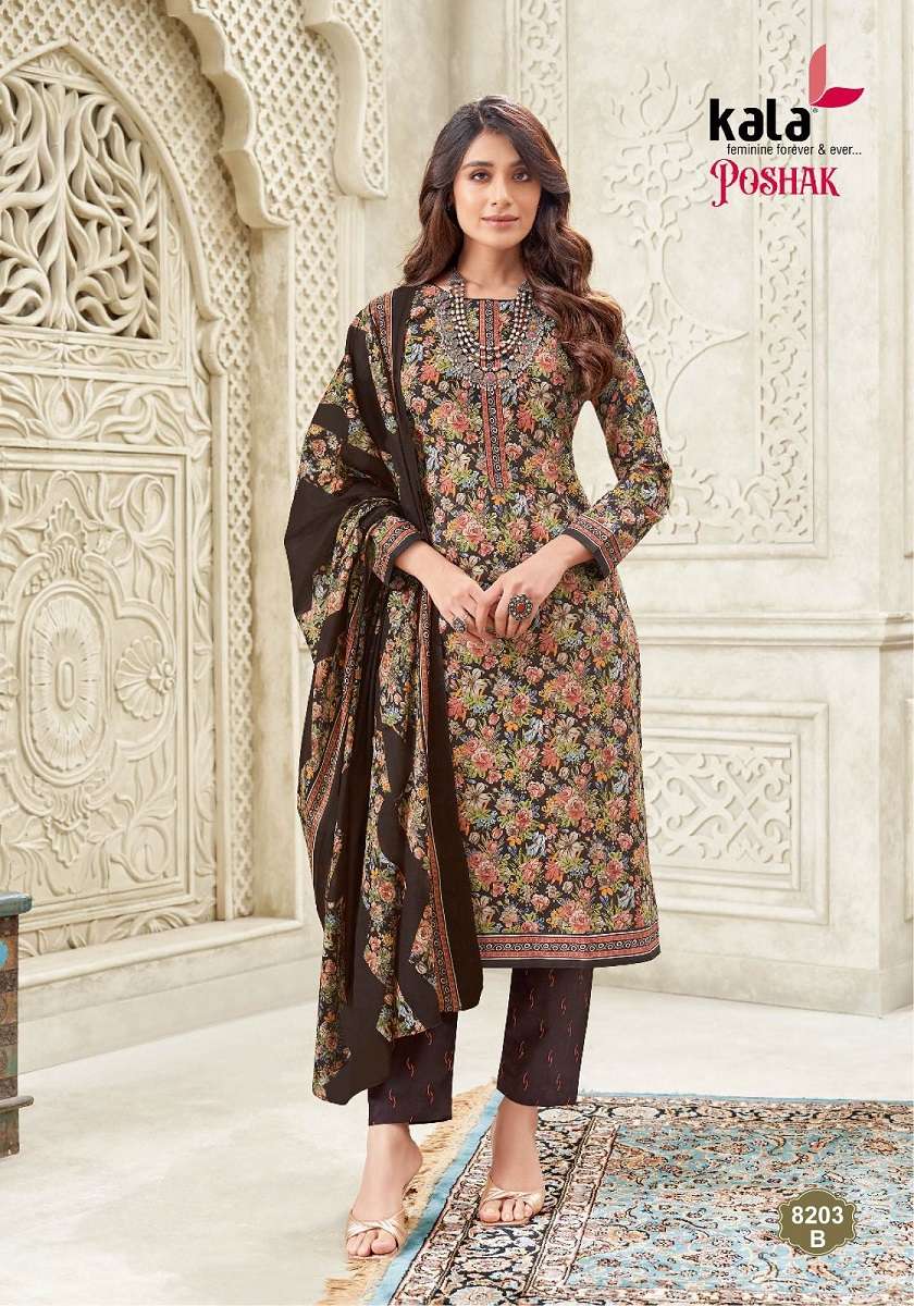 Kala Poshak Vol-2 series 8201 to 8212 Pure Cotton Printed salwar kameez in wholesale surat Buy New Latest Catalogue 2025 Kala Poshak Vol-2 series 8201 to 8212 Pure Cotton Printed salwar kameez in wholesale surat. Available in Singles and Bulk at Laiq Boutique. Buy at Wholesale price at very reasonable rate. Specification :