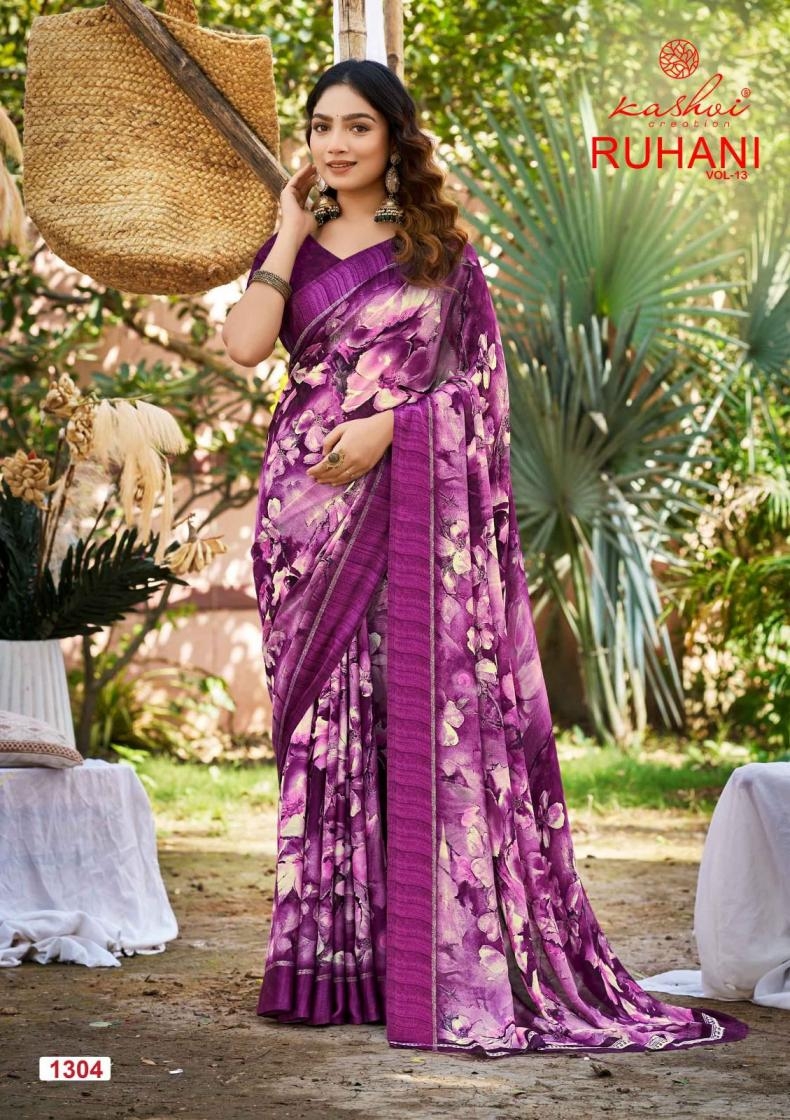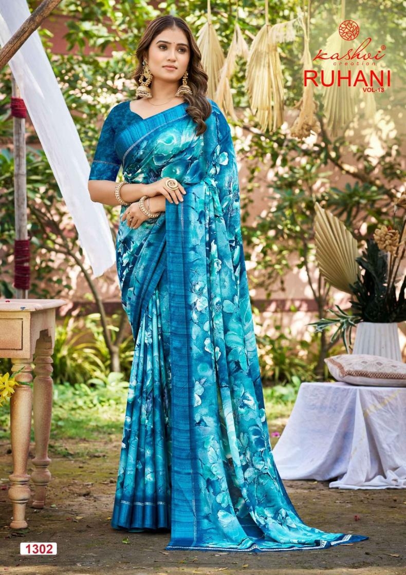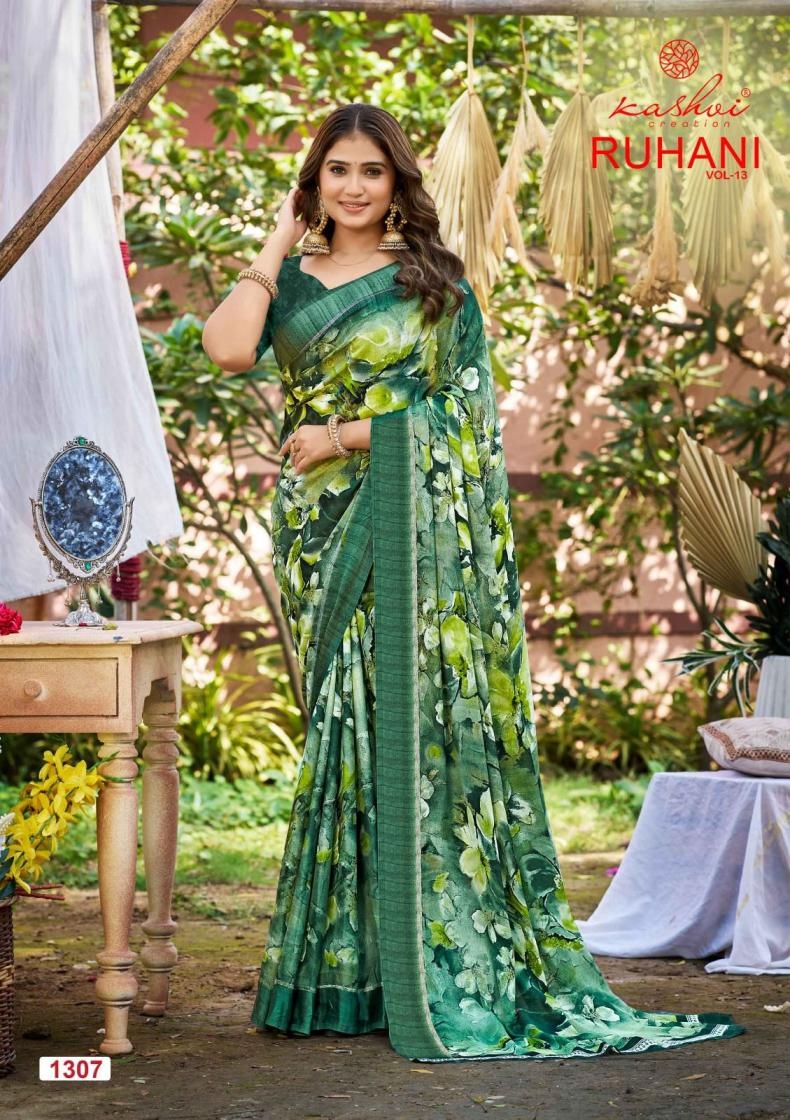 | Name : | Kashvi Creation Ruhani Vol 13 Series 1301 To 1308 Dull Moss Satin Patta Printed Sarees In Wholesale Surat | |