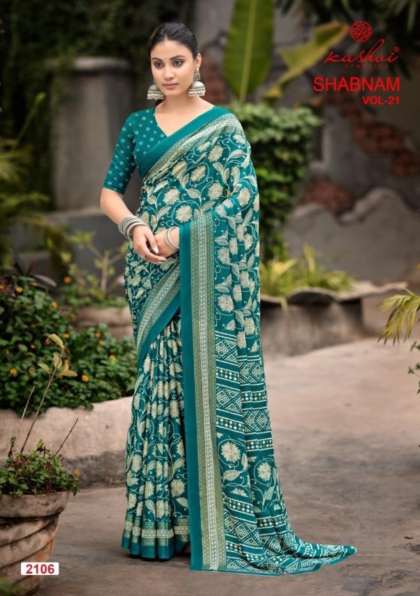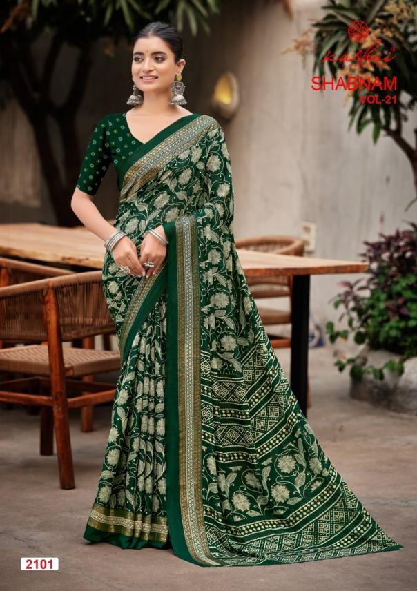 kashvi creation shabnam vol 21 series 2101-2108 dull moss saree Buy New Latest Catalogue 2025 kashvi creation shabnam vol 21 series 2101-2108 dull moss saree. Available in Singles and Bulk at Laiq Boutique. Buy at Wholesale price at very reasonable rate. Specification :