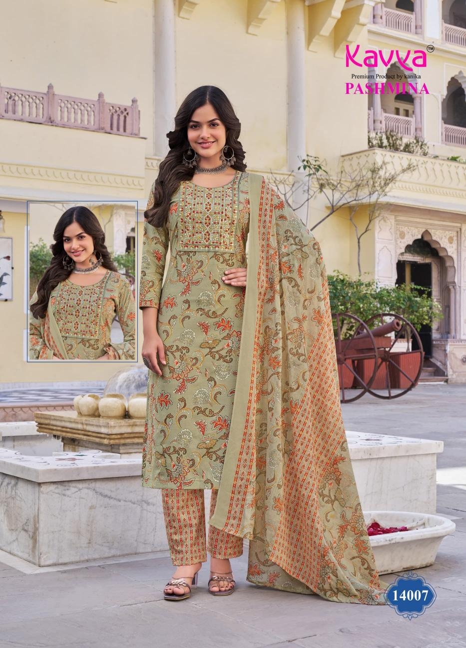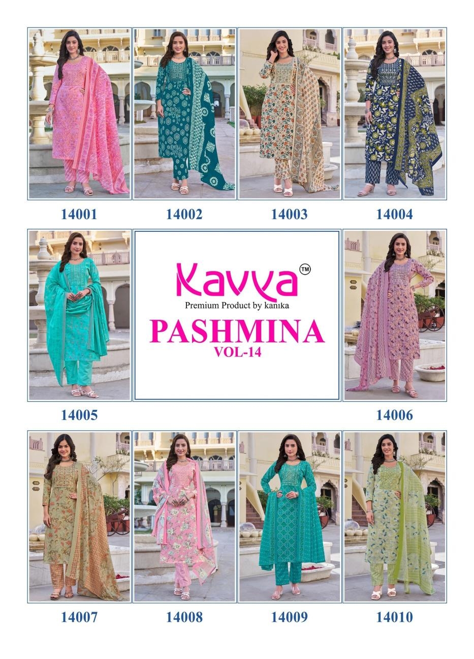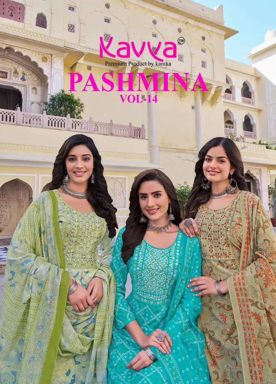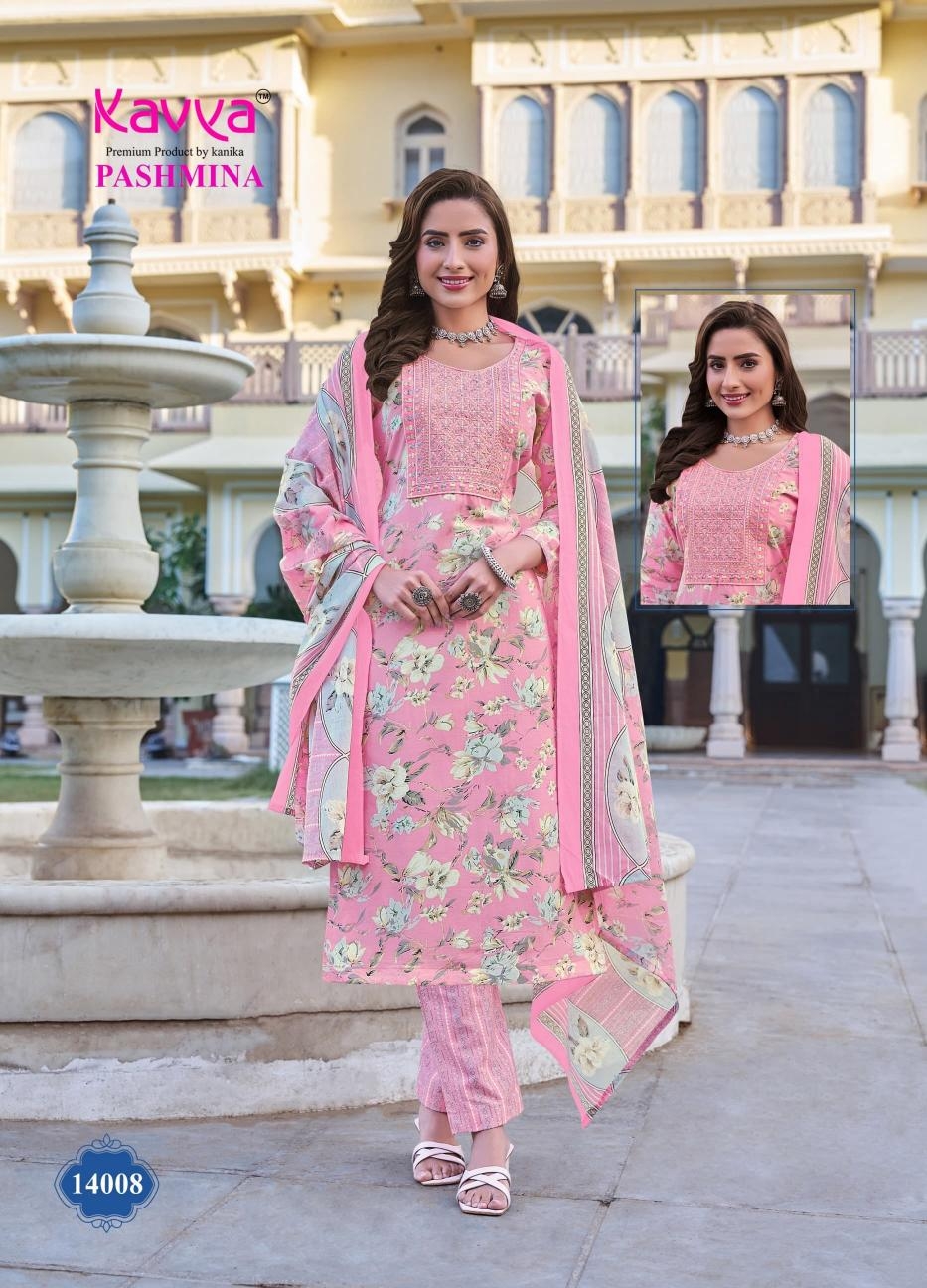 • Full Name : Kavya Pashmina Vol 14 Series 14001 To 14010 Malaysian Readymade Cotton Lining Classic Suit In Wholesale Surat