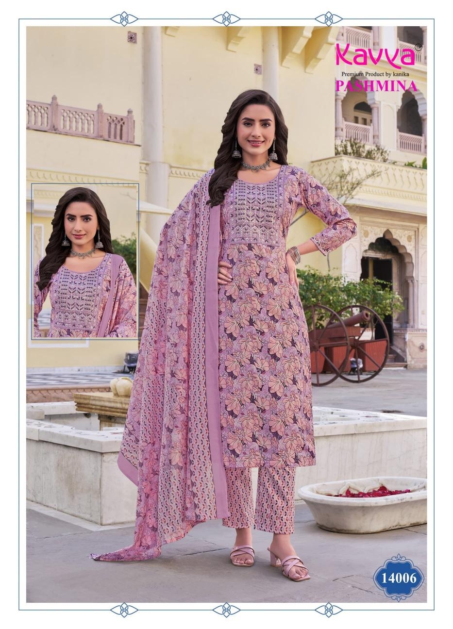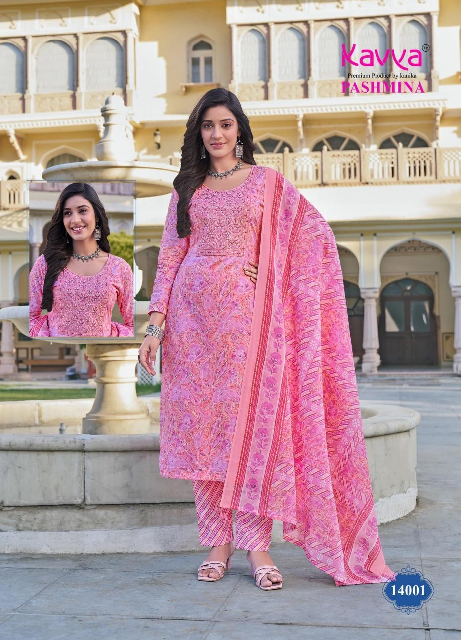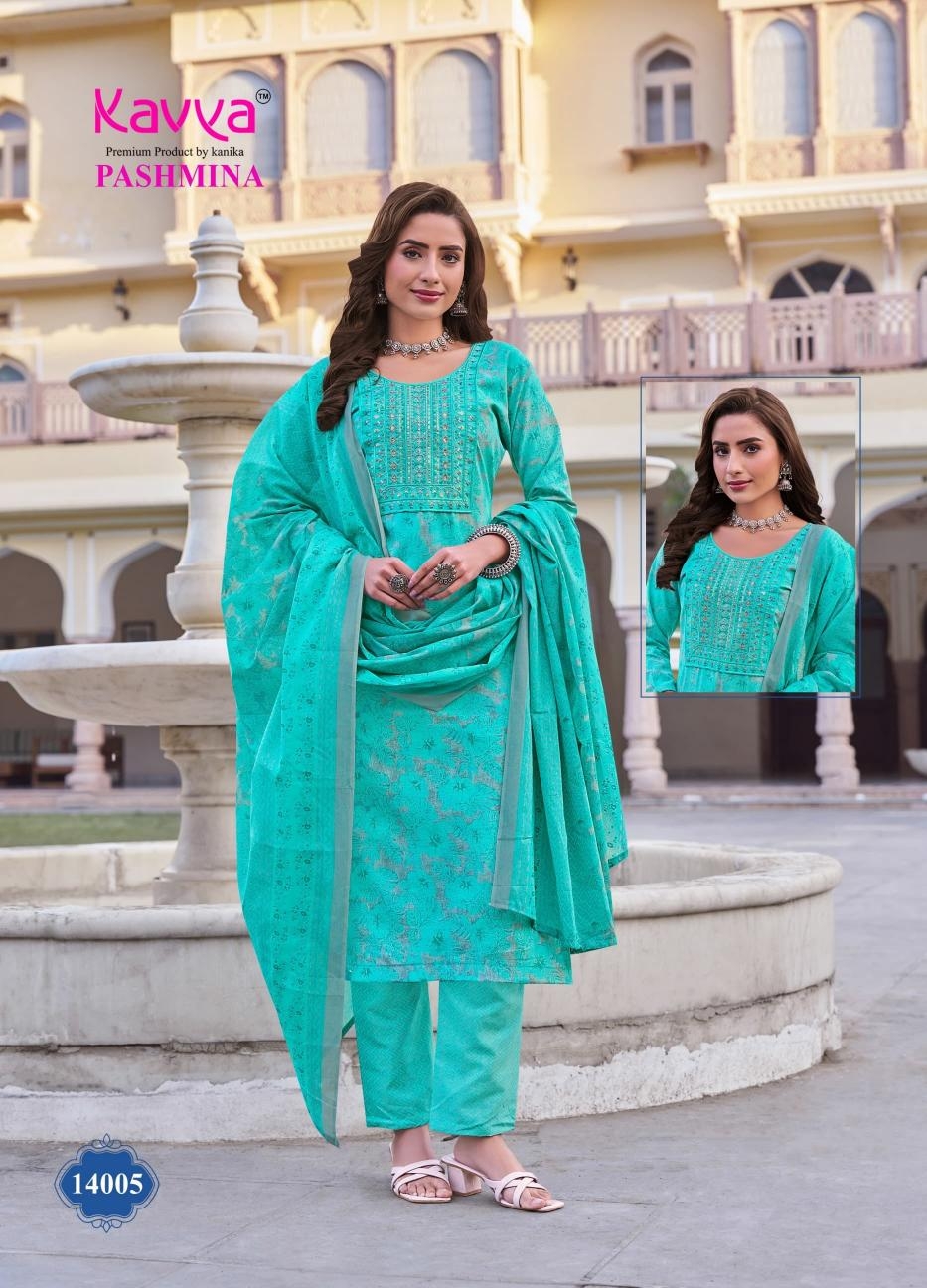 kavya pashmina vol 14 series 14001 to 14010 malaysian readymade cotton lining classic suit in wholesale surat
