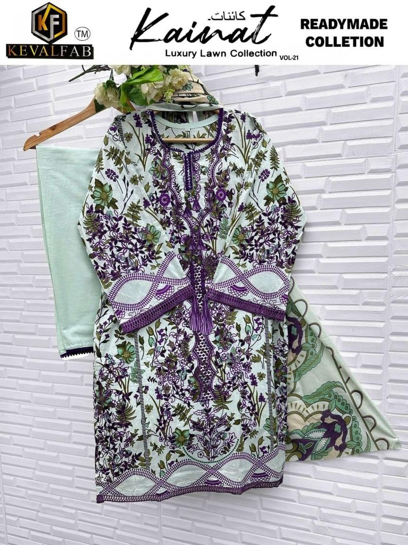 • Full Name : Keval Fab Kainat Vol 21 Series 21001 To 21006 Lawn Attractive Readymade Pakistani Suit In Wholesale Surat