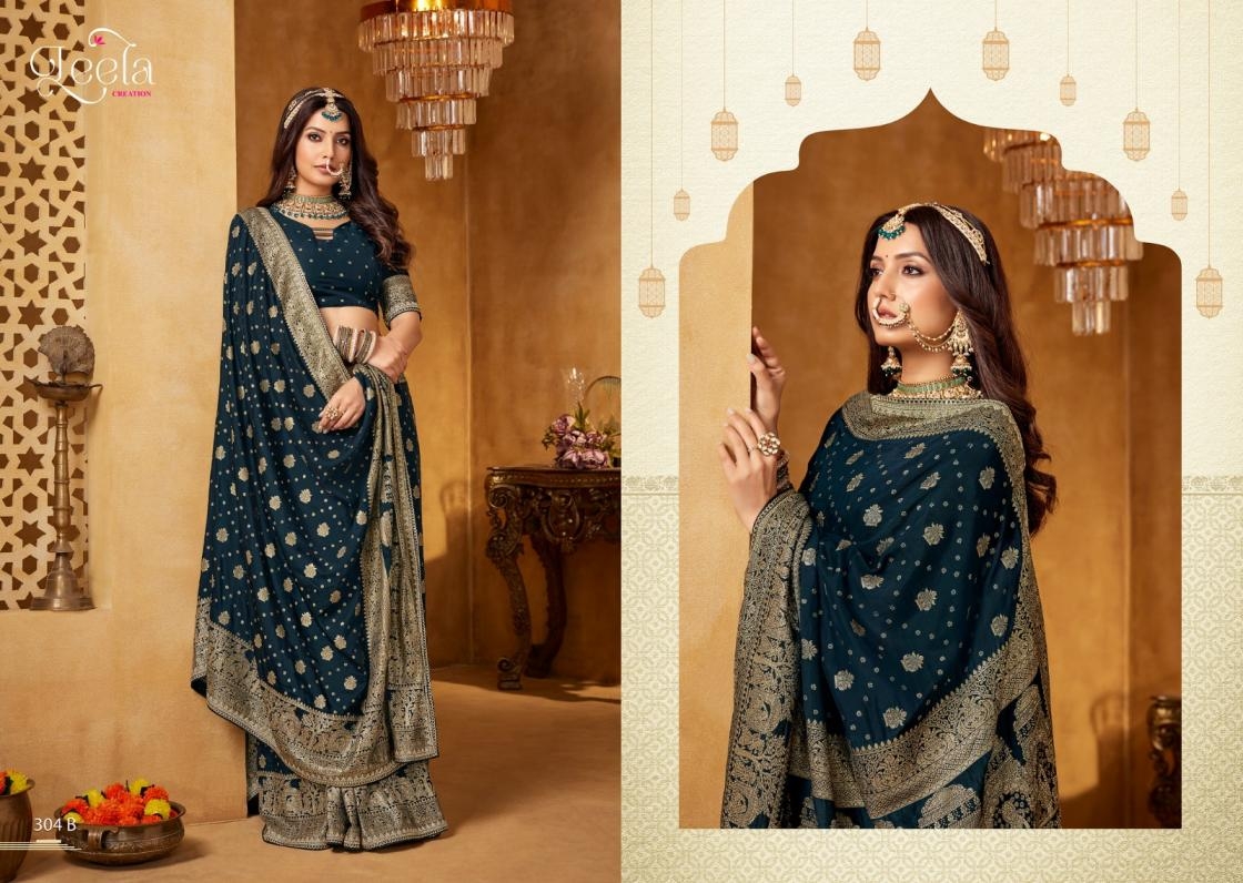 buy leela creation saanjh series 304 A TO 304 E viscose with jharkan work pretty look saree in wholesale surat latest catalogue 2025