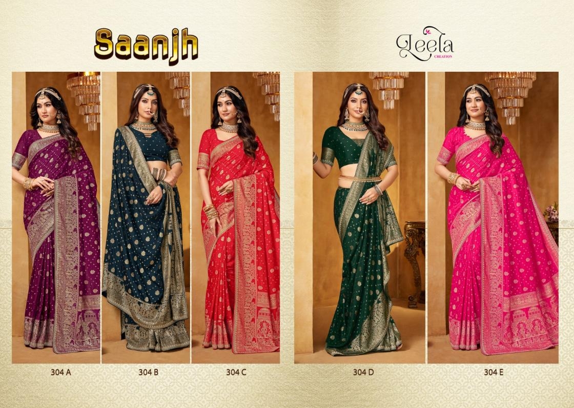 leela creation saanjh series 304 A TO 304 E viscose with jharkan work pretty look saree in wholesale surat