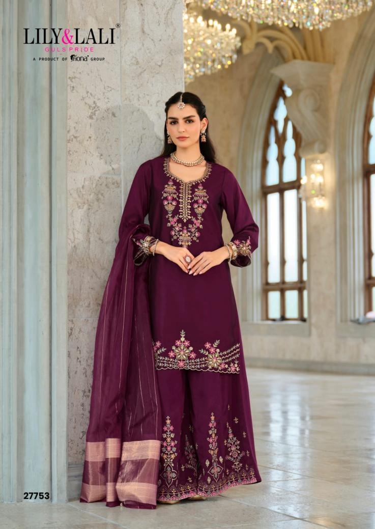 buy lily & lali tara series 27751 to 27754 silk readymade exclusive plazzo suit in wholesale surat latest catalogue 2025