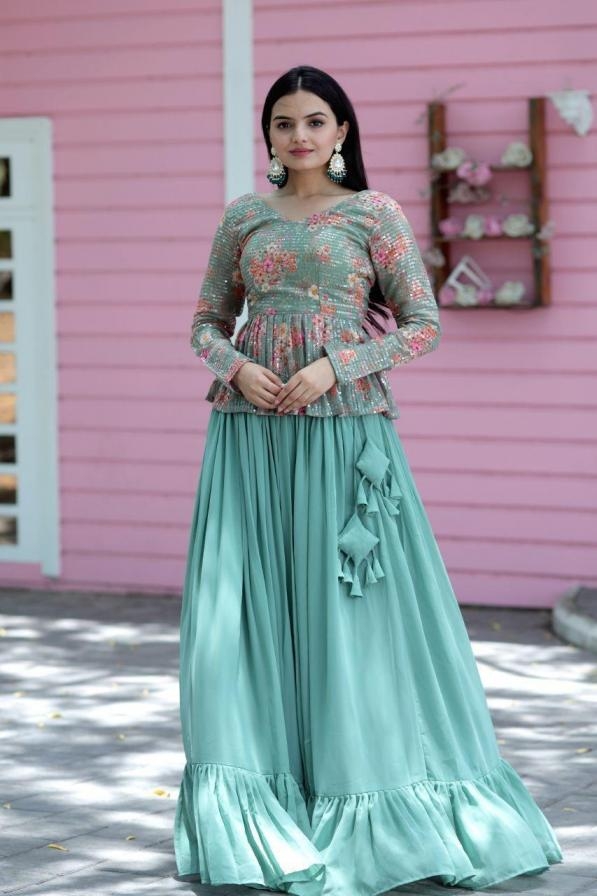 buy lw 7046 faux georgette flaired amazing look full stitched lehengas latest catalogue 2025