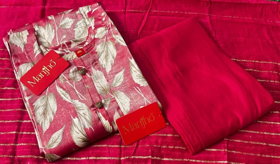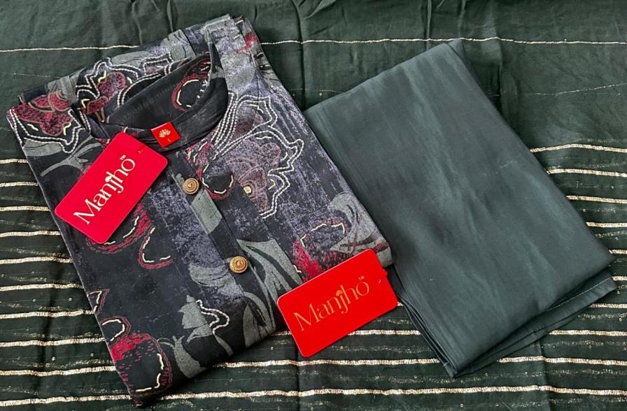 • Full Name : Manjho Vedika Premium Quality Glass Satin Prints Anarkali Readymade Suit