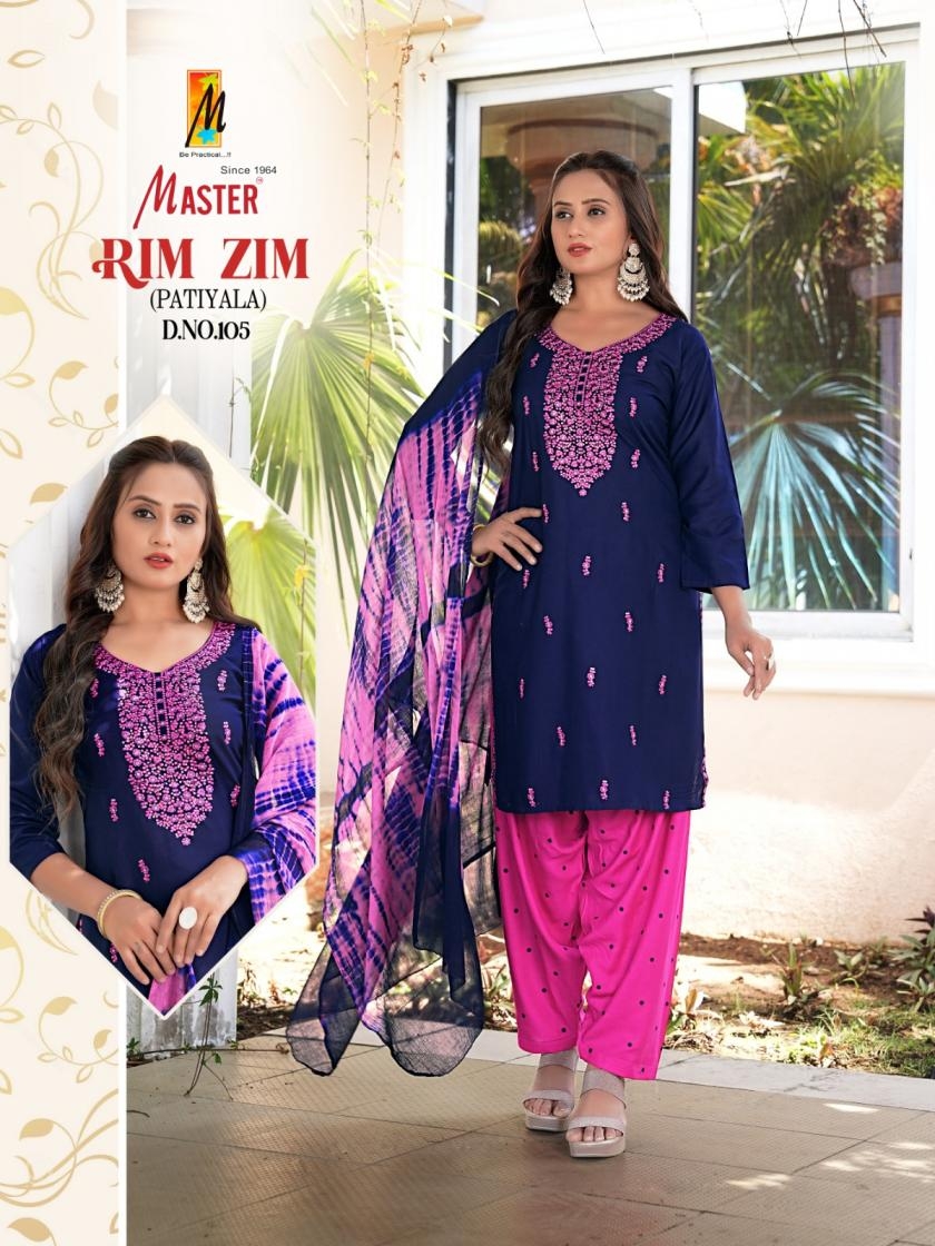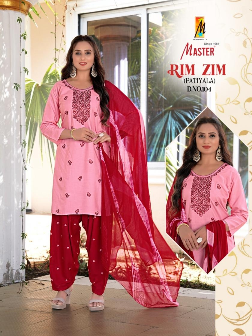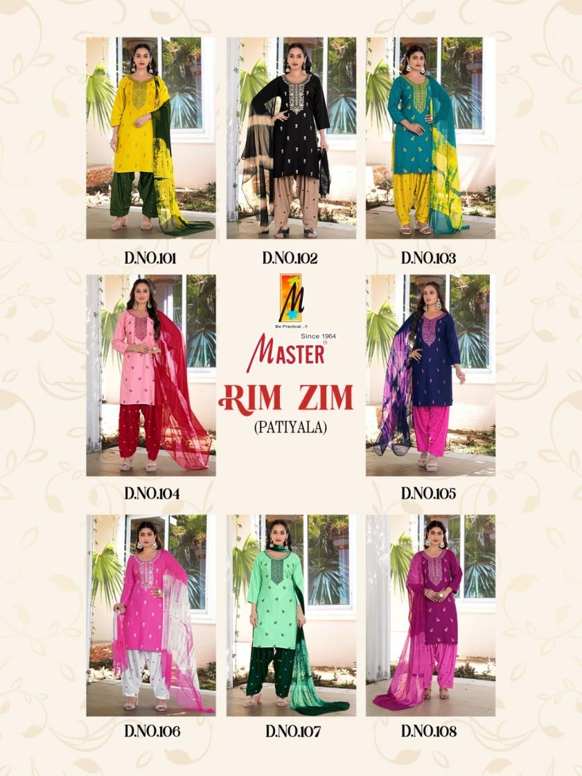 master rimzim series 101-108 rayon wholesale patiyala suit