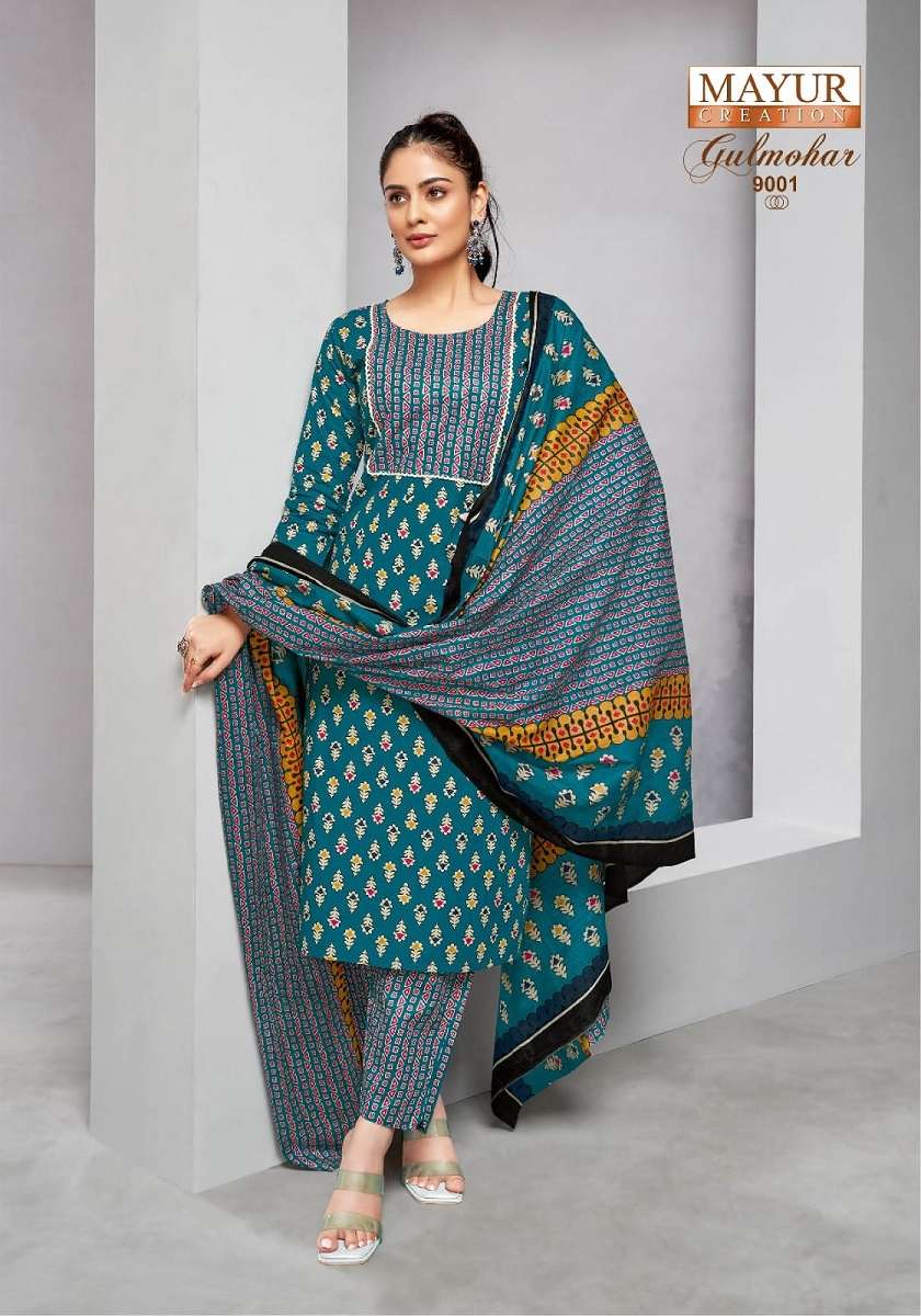 Mayur Gulmohar Vol-9 series 9001 to 9010 Pure Cotton Printed Kurti Pant With Dupatta in wholesale surat