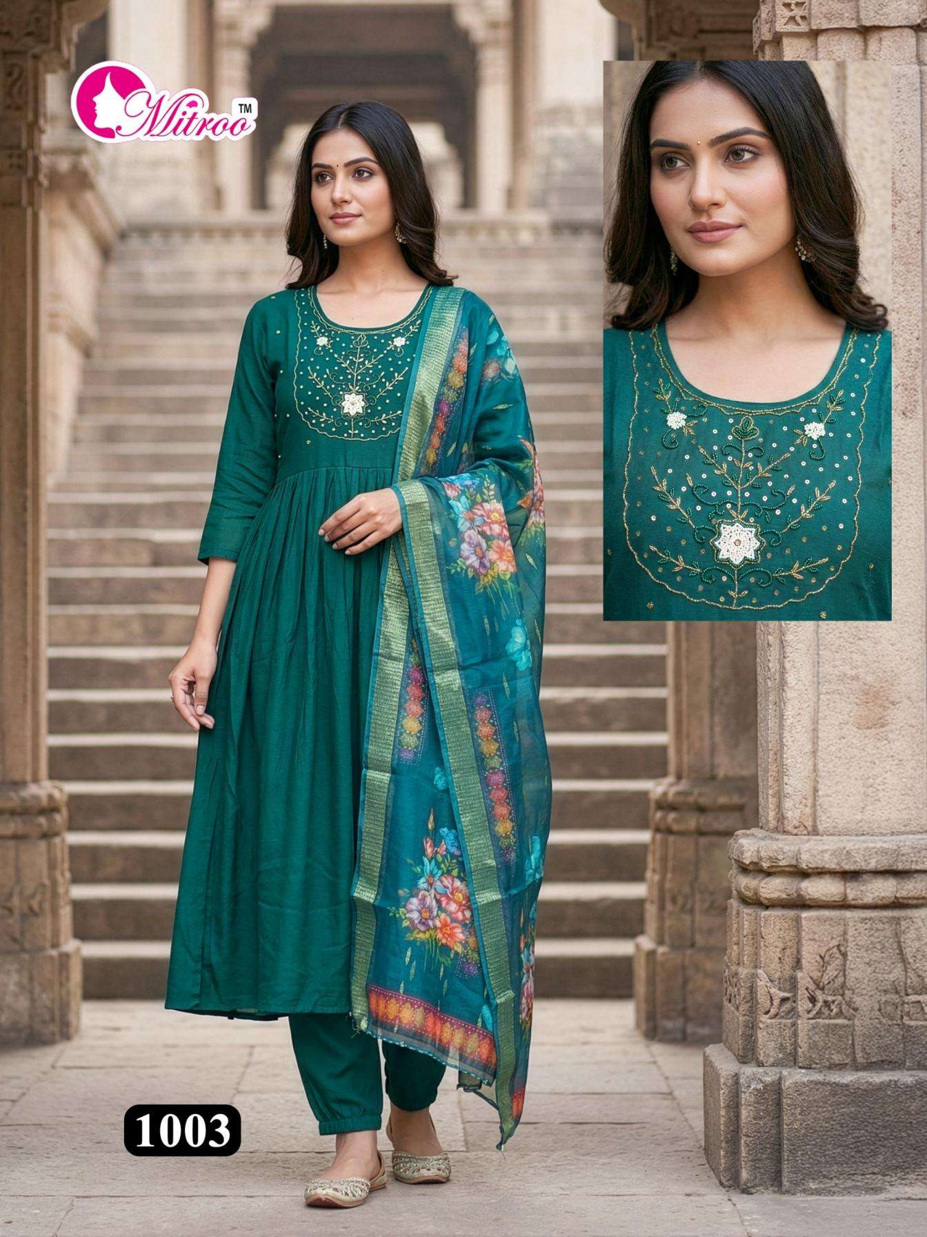 mitroo kum kum vol 2 series 1001-1008 mul chanderi readymade suit