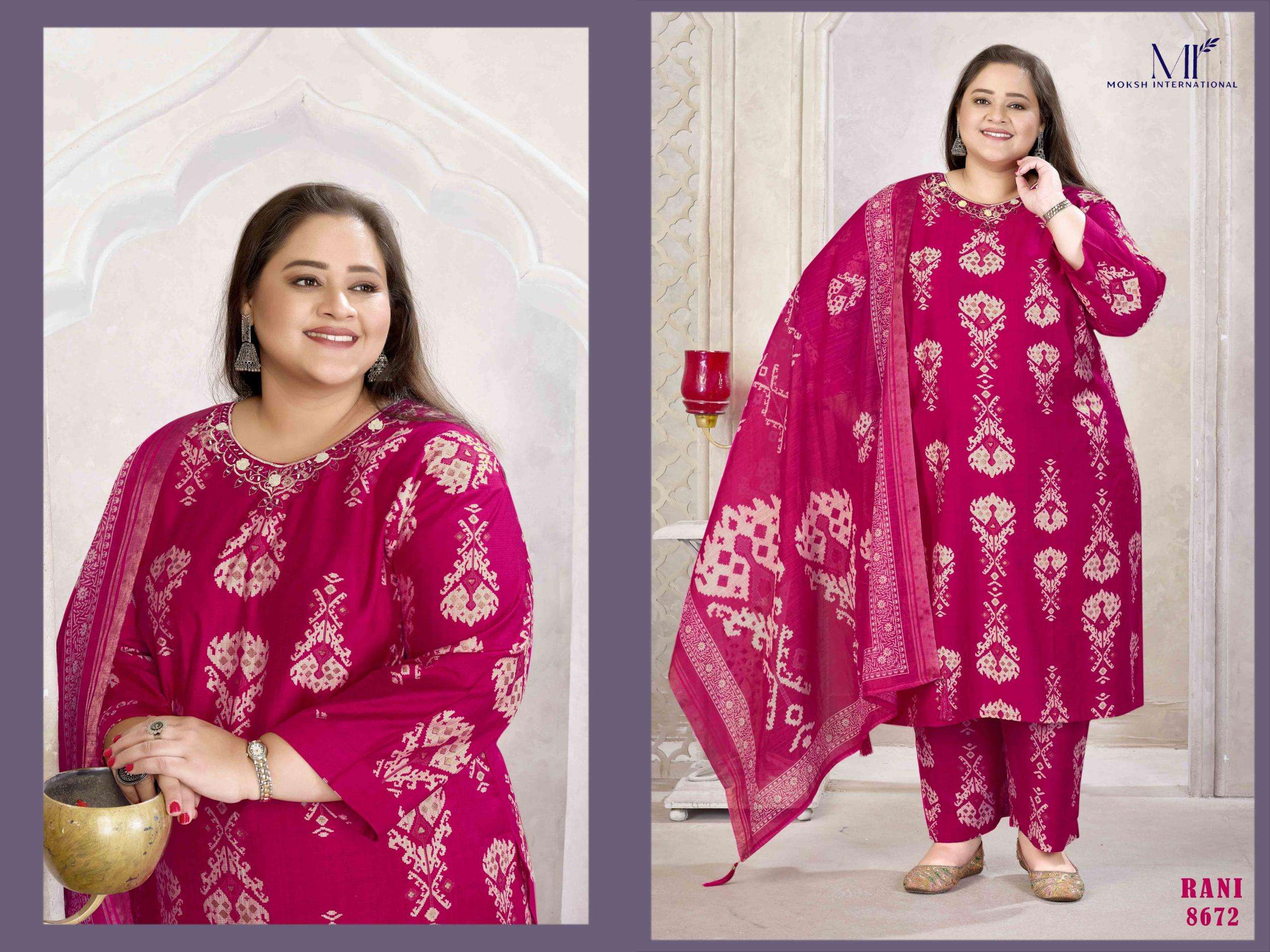 buy MOKSH PLUS SIZE GLORY VOL-3 series 8672 to 8674 suit in wholesale surat latest catalogue 2025