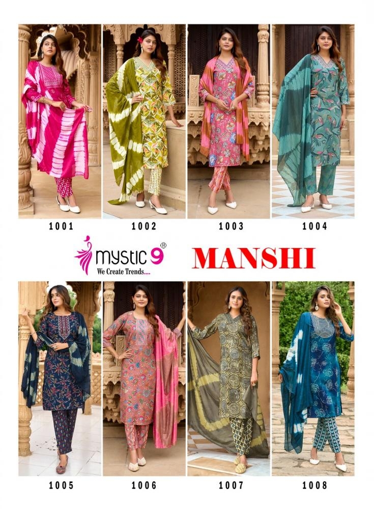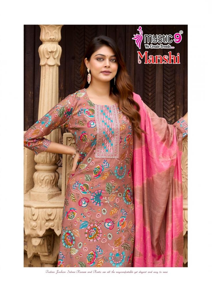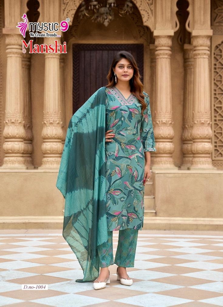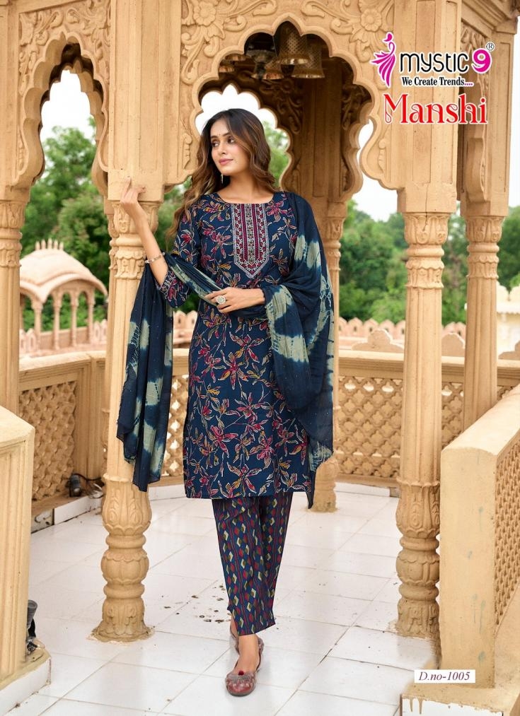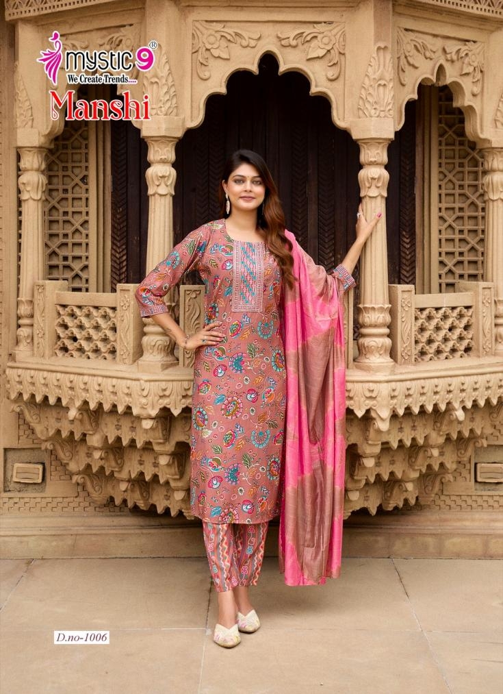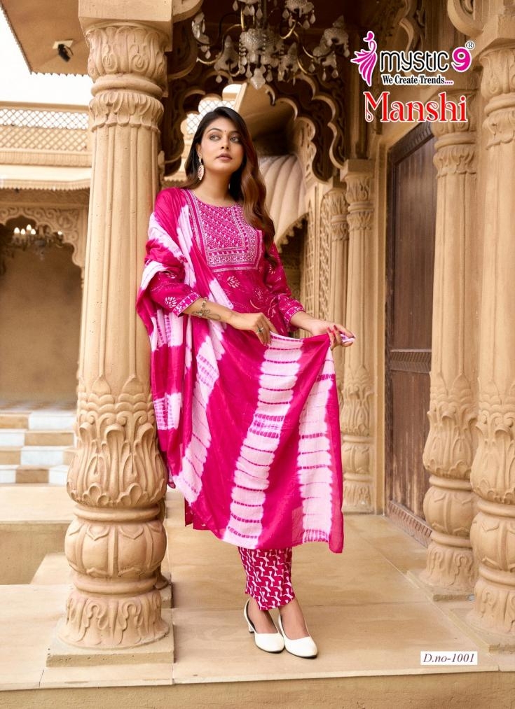 mystic9 manshi vol 1 series 1001 to 1008 readymade roman silk gorgeous look salwar kameez in wholesale surat Buy New Latest Catalogue 2025 mystic9 manshi vol 1 series 1001 to 1008 readymade roman silk gorgeous look salwar kameez in wholesale surat. Available in Singles and Bulk at Laiq Boutique. Buy at Wholesale price at very reasonable rate. Specification :