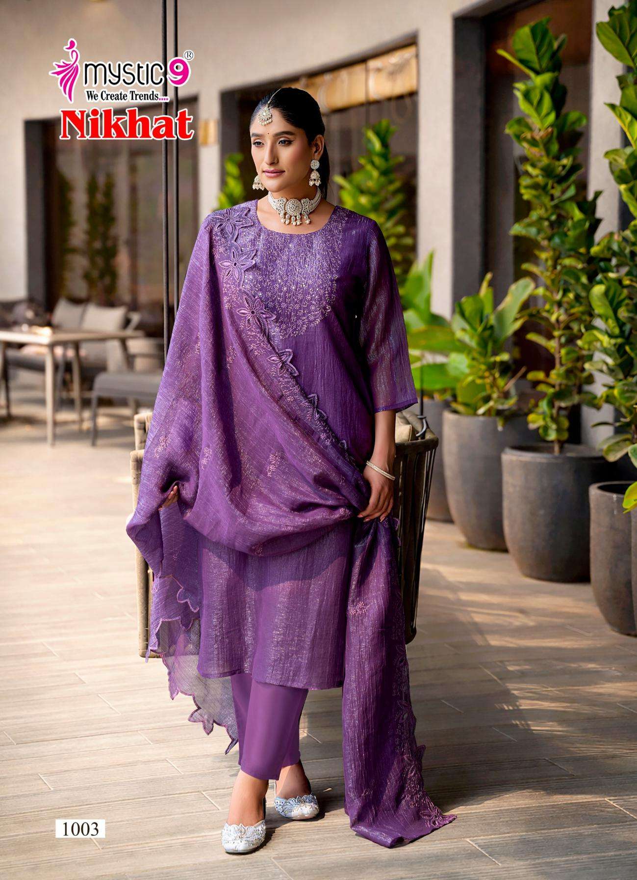 • Full Name : Mystic9 Nikhat Series 1001-1006 Burberry Silk Readymade Suit