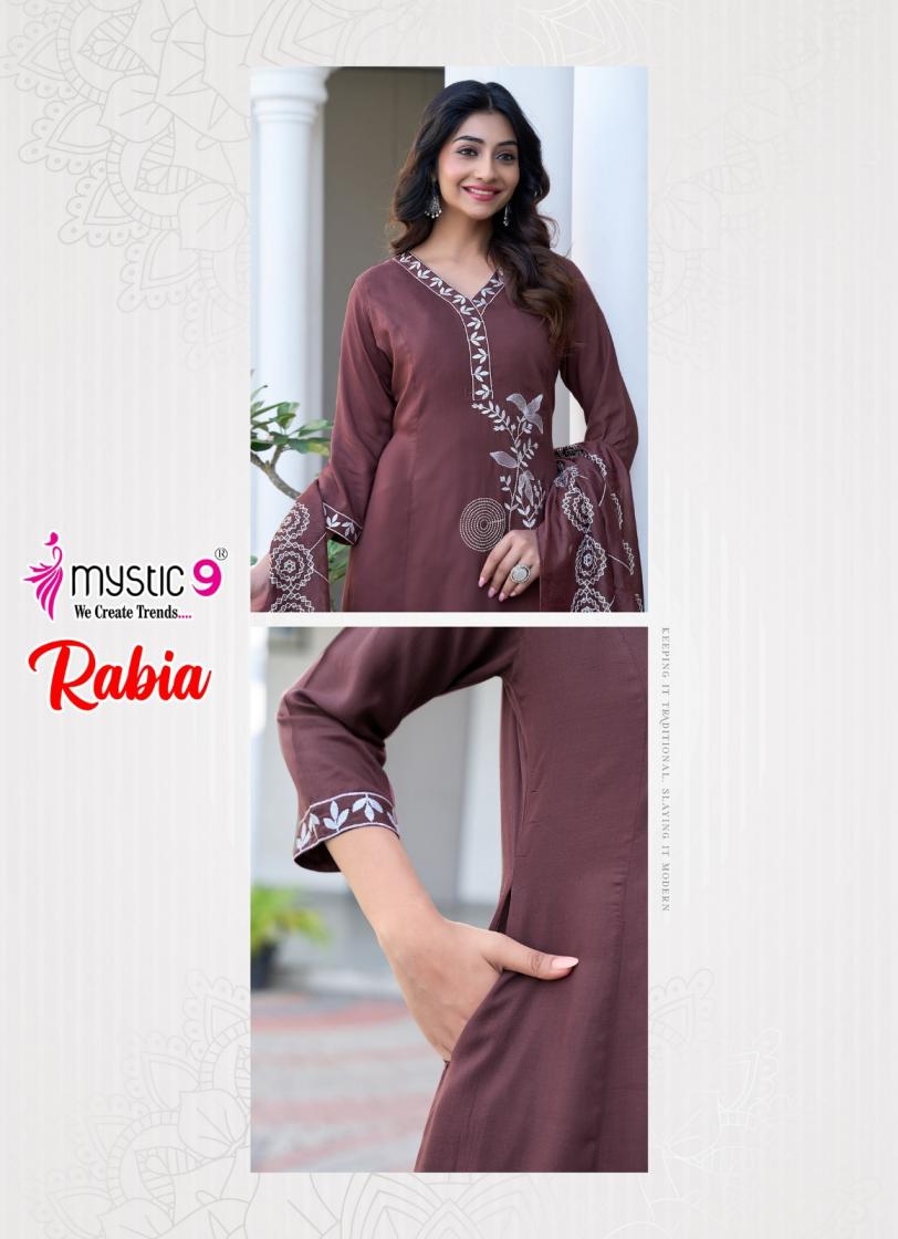 • Full Name : Mystic9 Rabia Vol 1 Series 1001-1008 Modal Mul Readymade Suit