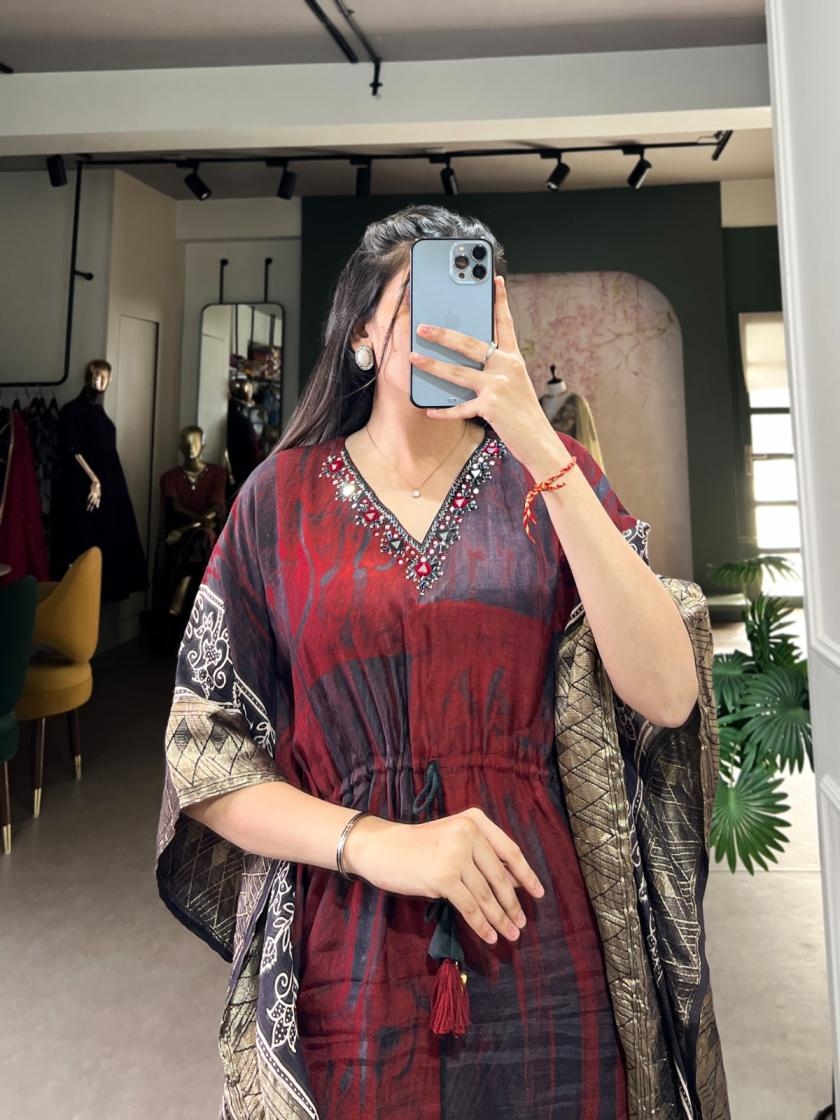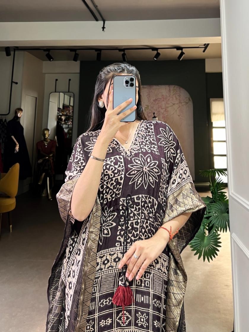 nnk3022 viscose zari border mirror work readymade kaftan kurtis