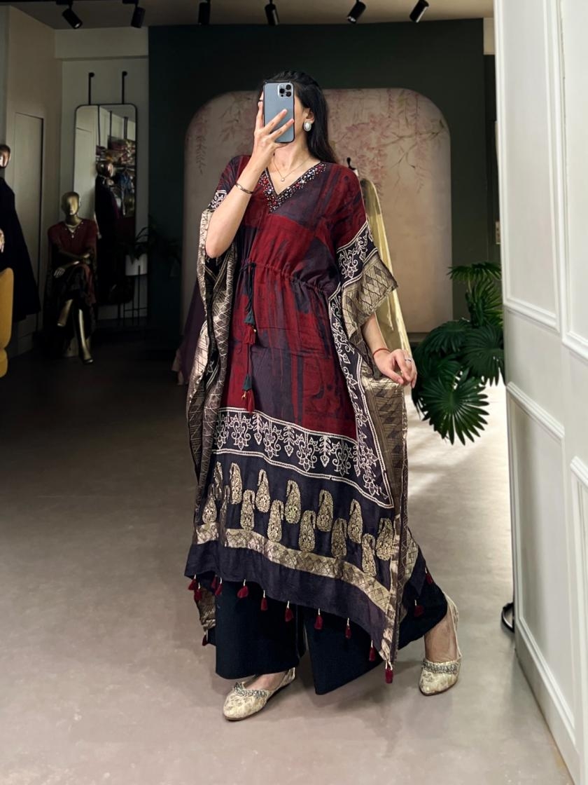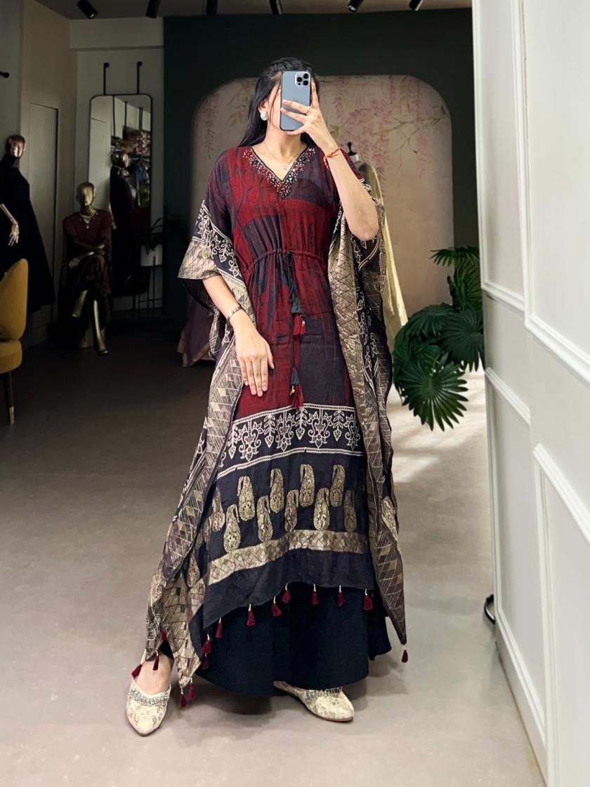 buy nnk3022 viscose zari border mirror work readymade kaftan kurtis latest catalogue 2025