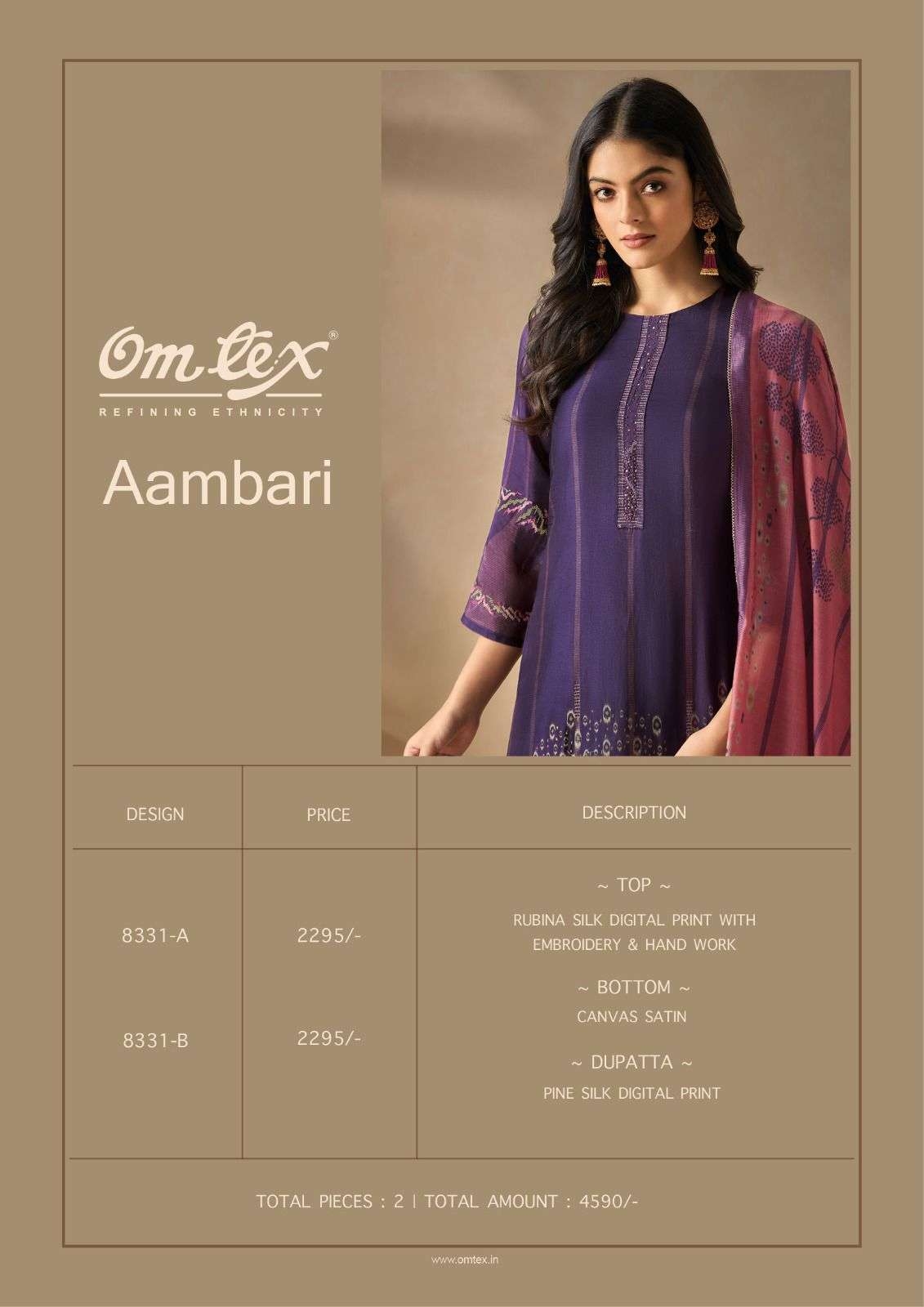 buy Omtex Aambari series 8331A to 8331B rubina silk digital print Premium Designs Salwar kameez in wholesale surat latest catalogue 2025