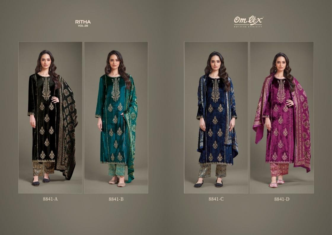buy omtex ritha vol 28 series 8841 A to 8841 D viscose velvet pretty look readymade big size suit in wholesale surat latest catalogue 2025