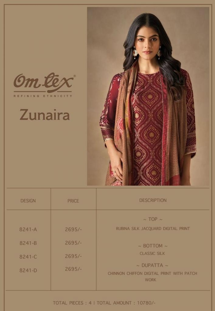 • Full Name : Omtex Zunaira Series 8241 A To D Rubina Silk Jacquard Pretty Look Salwar Kameez In Wholesale Surat