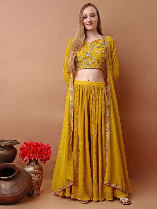 • Semi-stitched lehengas for custom fit