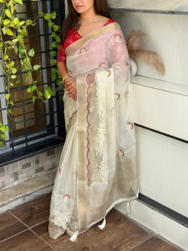 pr kasturi tissue silk thread work saree in wholesale surat