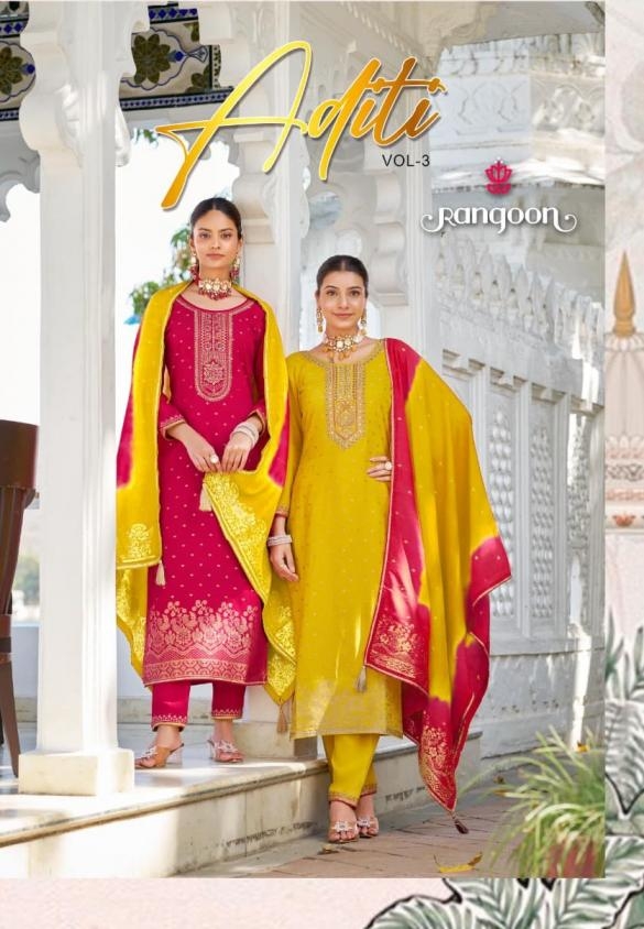 • Full Name : Rangoon Aditi Vol 3 Series 7041 To 7044 Readymade Viscose Jacquard Unique Suit In Wholesale Surat