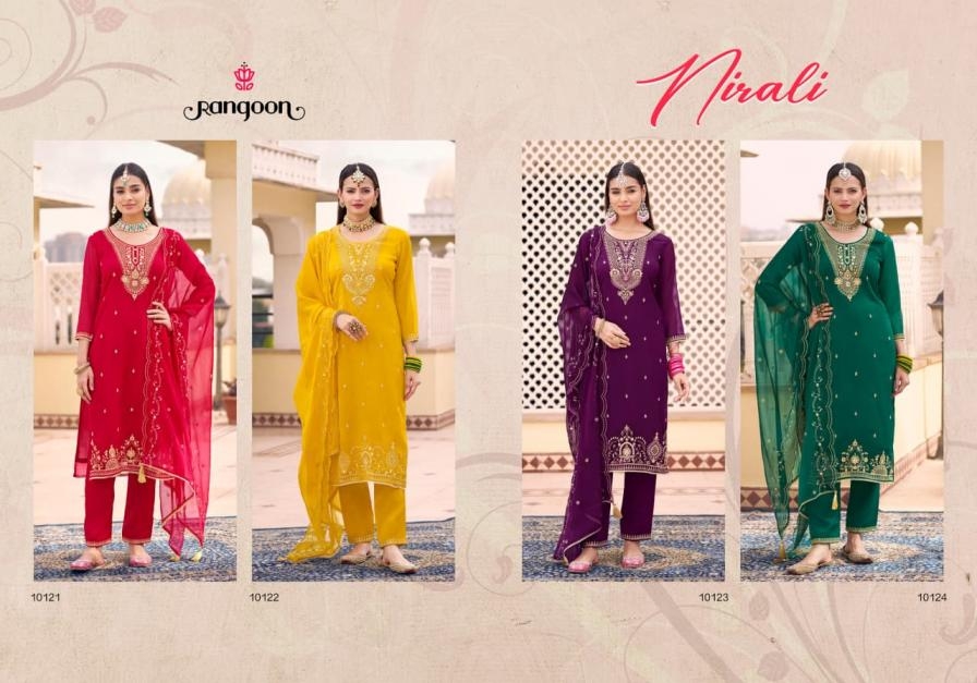 rangoon nirali series 10121 to 10124 readymade chiffon womens indian salwar kameez in wholesale surat