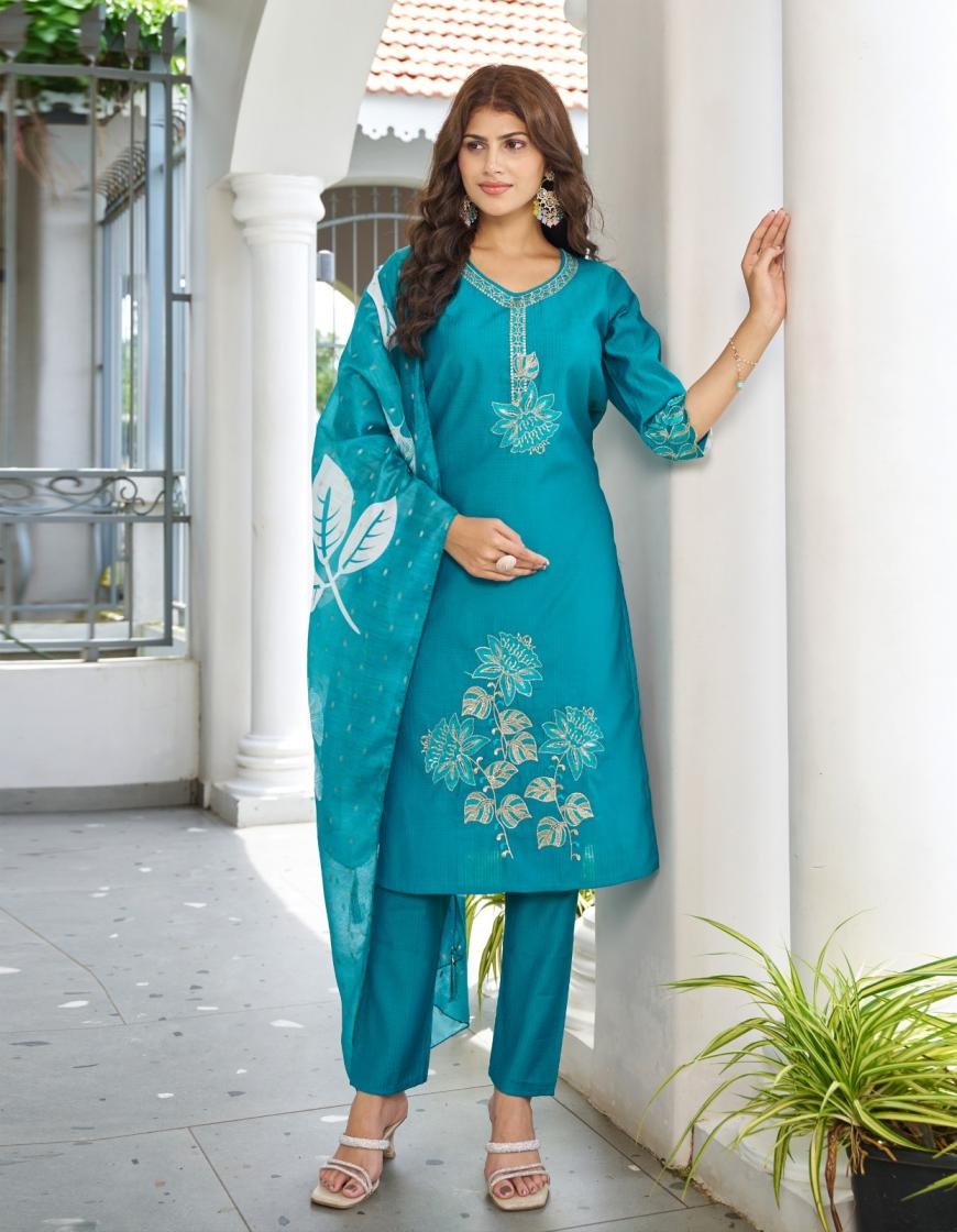 We have salwar suits which are readymade and unstitched both options available in a wide range of fabrics like cotton, silk, georgette, chiffon, organza, muslin, velvet, and more. We have simple daily wear suits, heavy embroidered designer salwar suits for both parties and weddings.