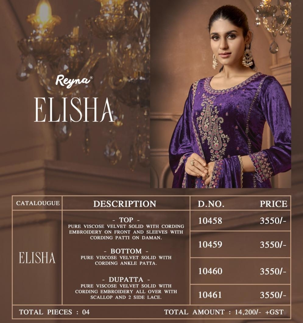 buy reyna elisha series 10458 to 10461 viscose velvet solid design salwar kameez in wholesale surat latest catalogue 2025
