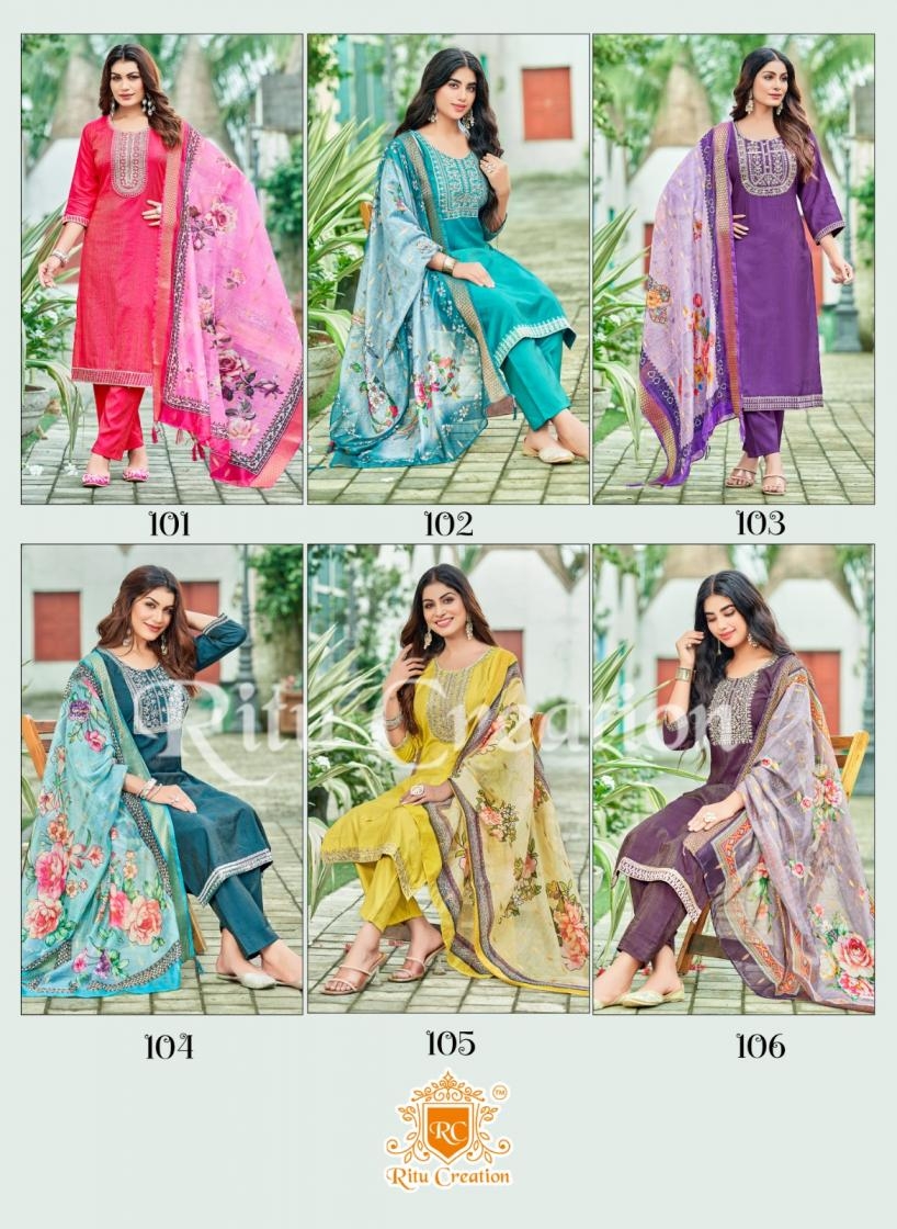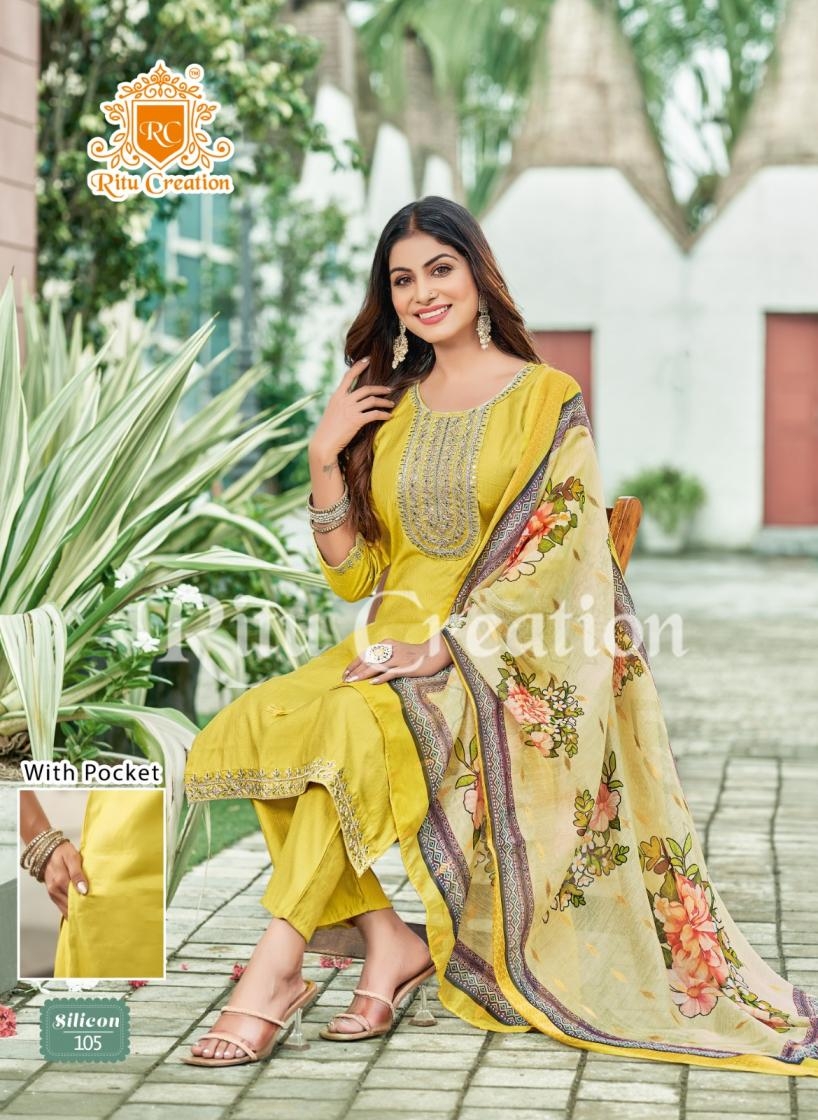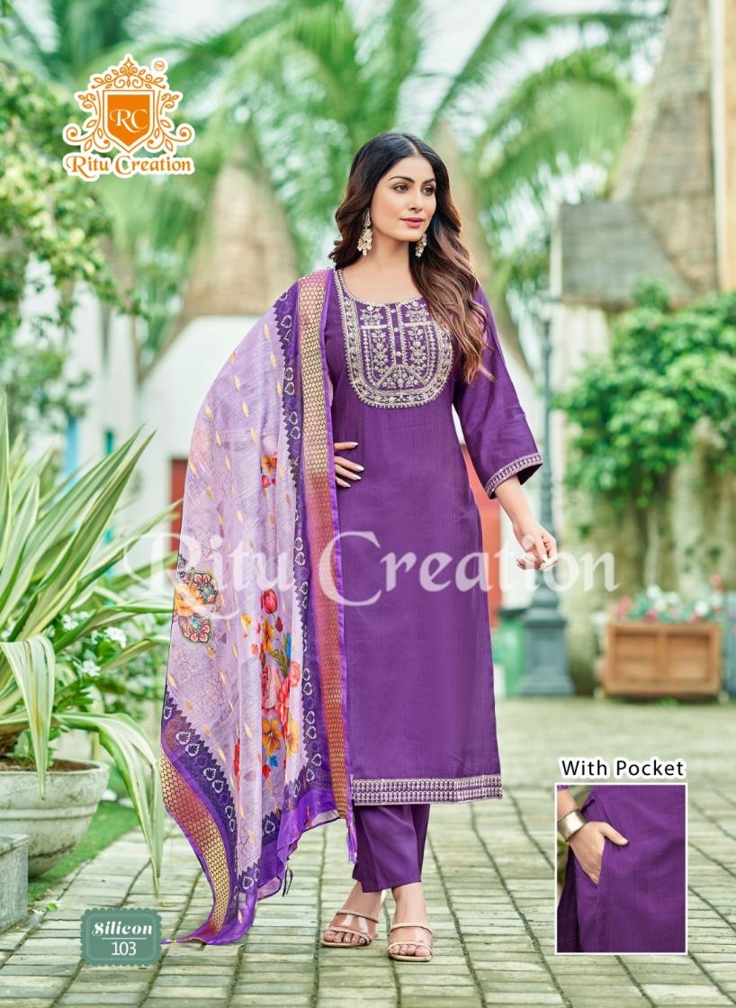 ritu creation silicon series 101 to 106 vatican simmar readymade trendy suit in wholesale surat