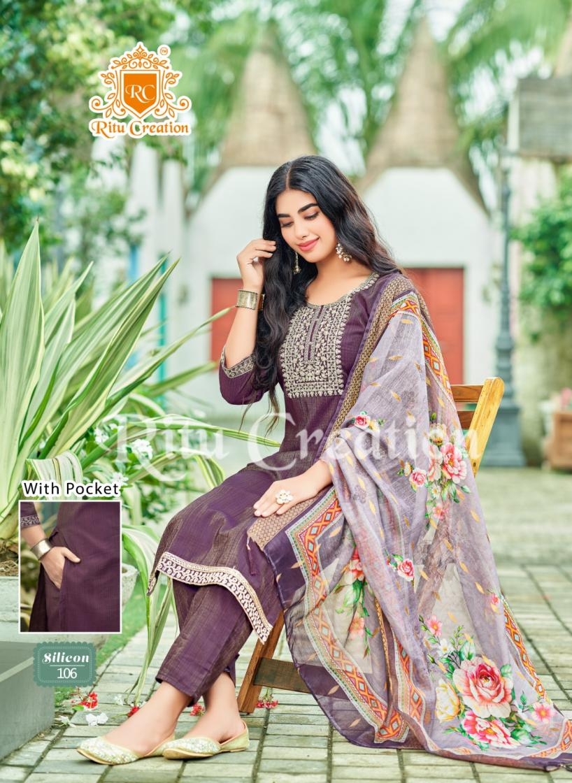 | Name : | Ritu Creation Silicon Series 101 To 106 Vatican Simmar Readymade Trendy Suit In Wholesale Surat | |