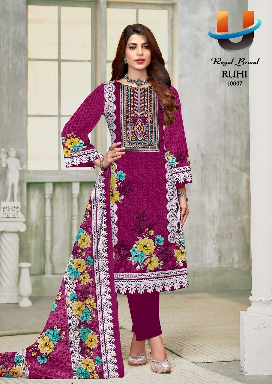 Royal Ruhi Vol-10 series 10001 to 10008 Soft Cotton Printed salwar kameez in wholesale surat
